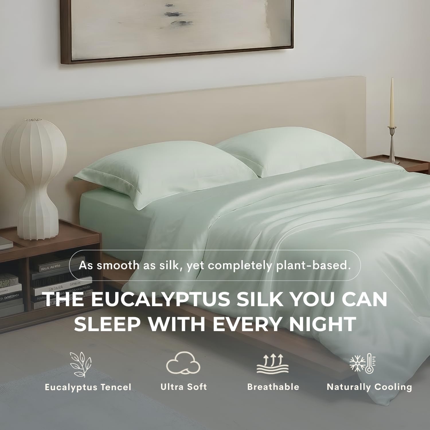 SKIN-FRIENDLY: Perfect for sensitive or acne-prone skin, our Eucalyptus Tencel duvet cover set offers a soothing touch. Unlike traditional materials that can trap sweat and dirt, our gentle Lyocell fabric ensures a comfortable, irritation-free sleep. Wake up refreshed with radiant skin every morning!