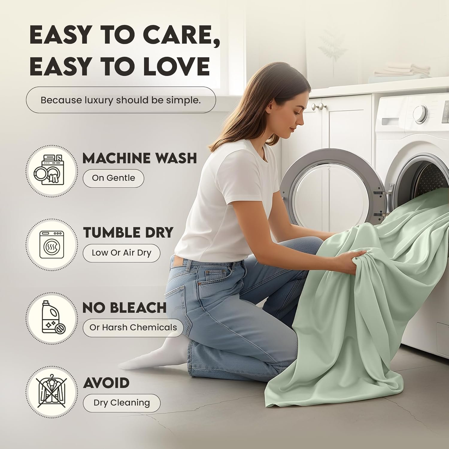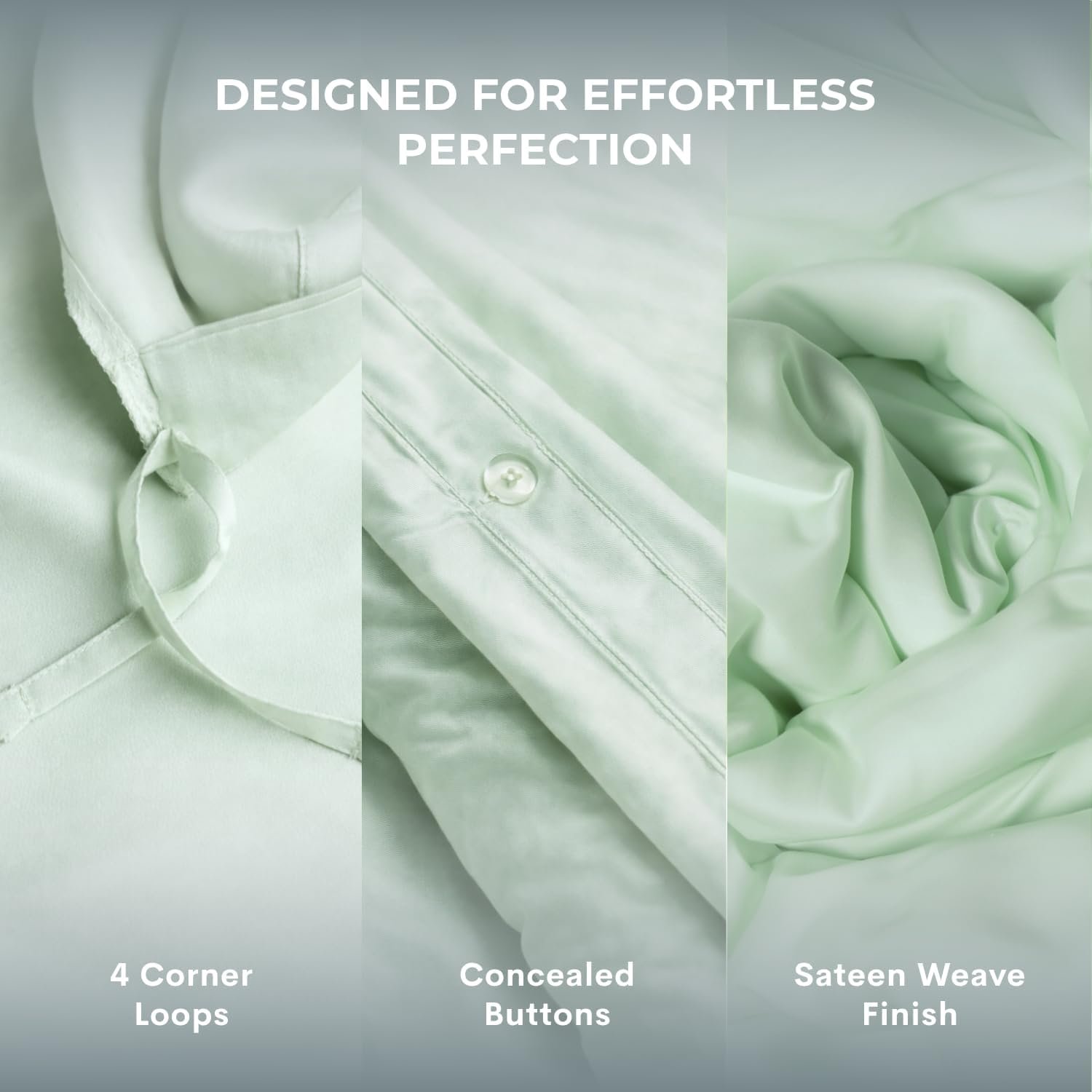 CORNER TIES & CONCEALED BUTTONS FOR SECURE FIT: Eliminate the hassle of shifting inserts with our lightweight Eucalyptus duvet cover set! Designed with 4 corner loops and discreet hidden buttons, this luxurious feature ensures your duvet stays perfectly in place, providing you with a neat and elegant bedding experience.