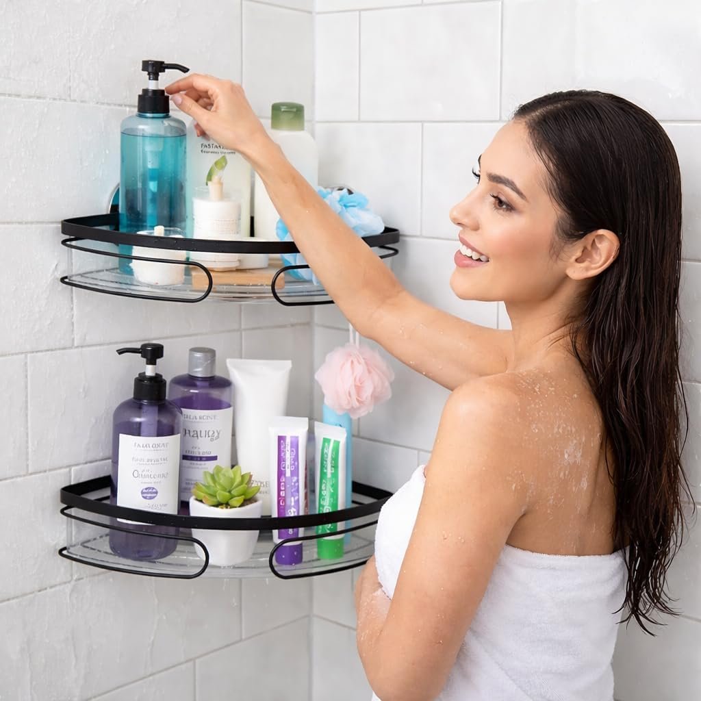 ✅ SPACE-SAVING DESIGN – Triangular shelf fits neatly into corners to maximize space for shampoos, soaps, and daily essentials.
