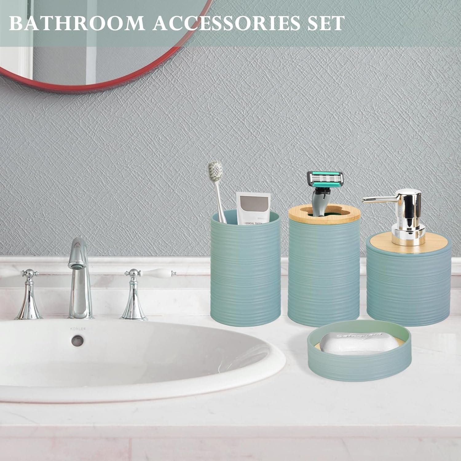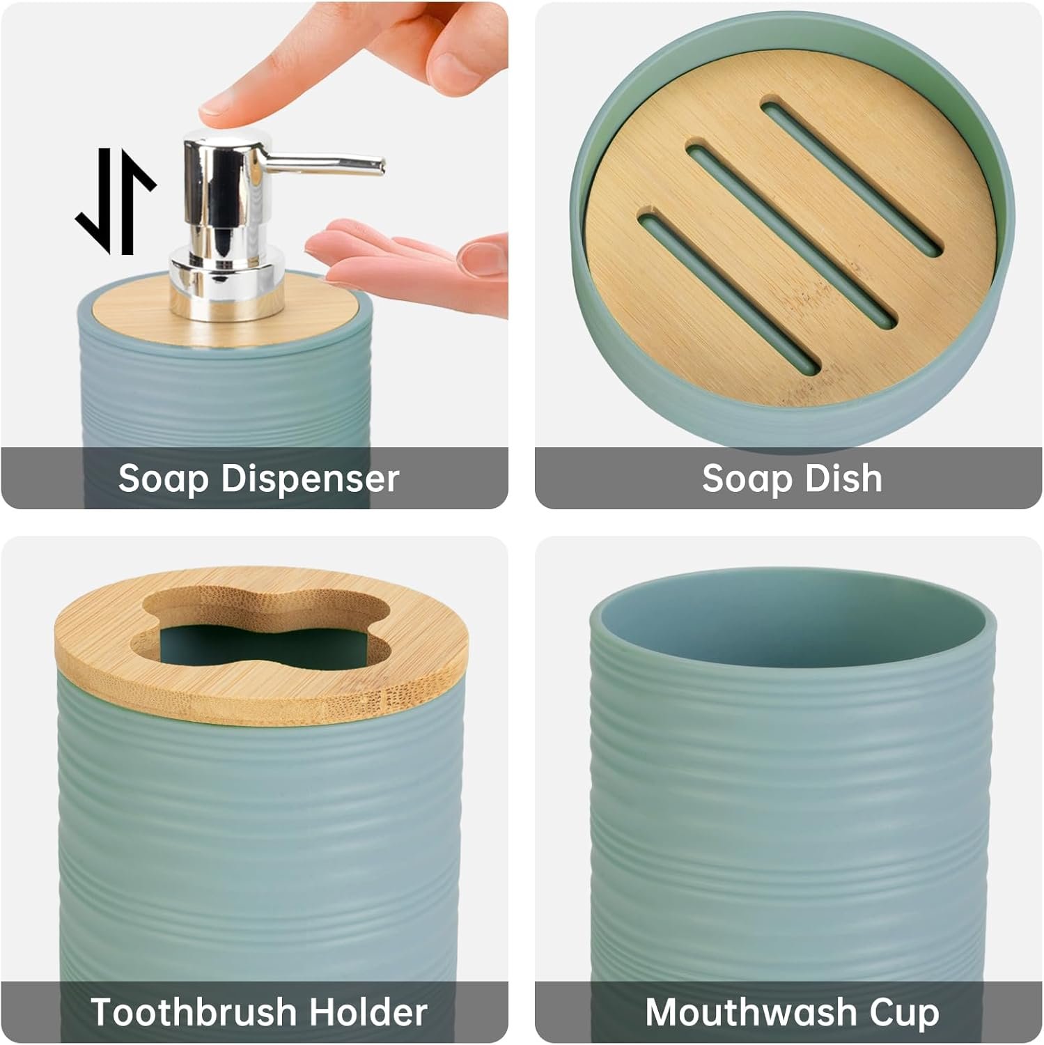 Be the first to review “4 Pieces Bamboo Bathroom Accessories Set, Bathroom Accessory Set with Soap Dispenser and Toothbrush Holder, Soap Dish and Toothbrush Cup, Boho Bathroom Decor(Aqua)”
