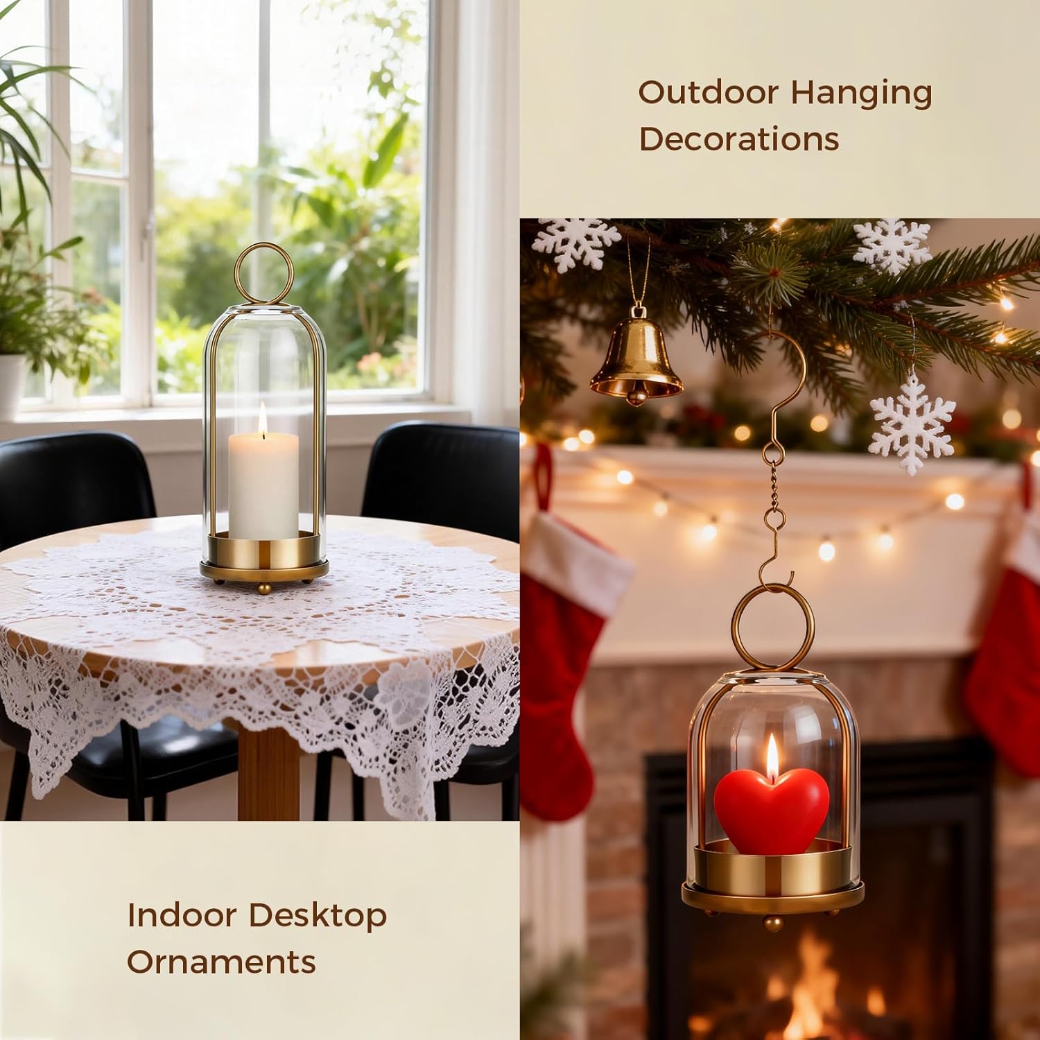 Indoor and Outdoor Decoration: This candle holder lantern glass comes with a metal hook (approximately 17.4cm/6.85″), allowing it to be hung outdoors, near doorways, flower stands, or flower baskets, or placed on entrances, tables, fireplace mantels, bookshelves, etc. It’s suitable for industrial, western, French country, or vintage interior designs.