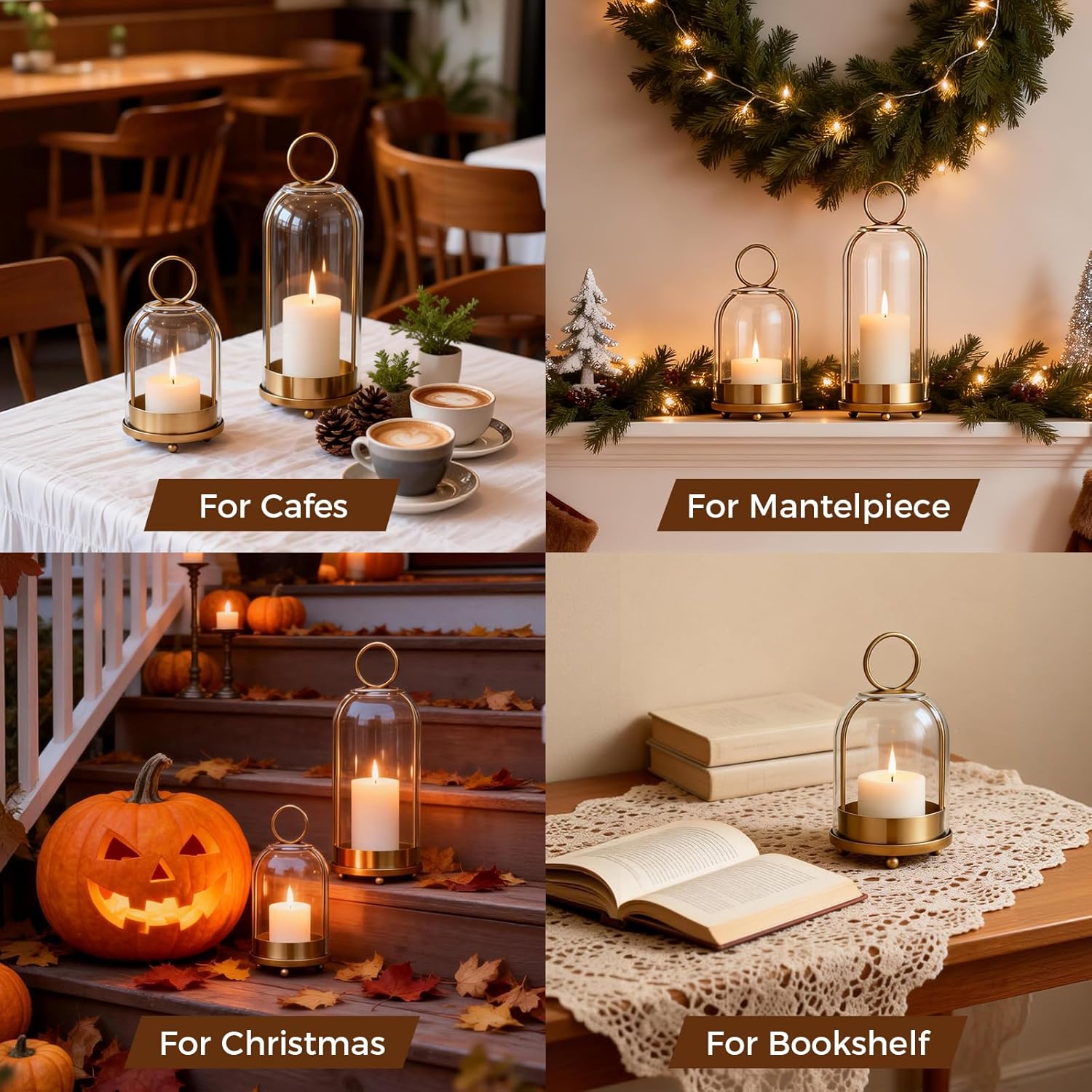 5″&4″ Hurricane Glass Candle Holders, Hanging Brass Metal Candle Holder for Pillar Candles Table Coffee Table Decor Interior Decoration