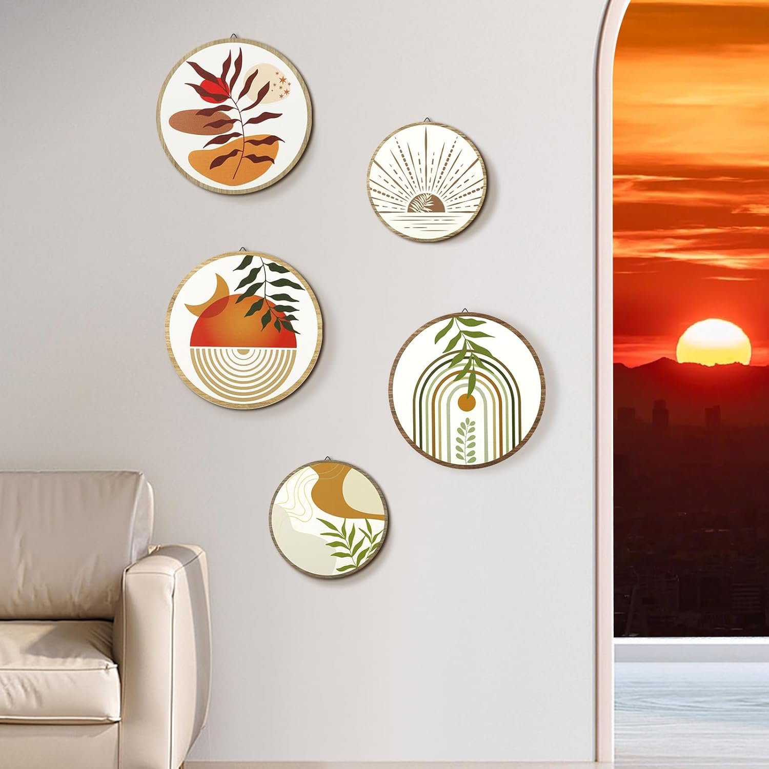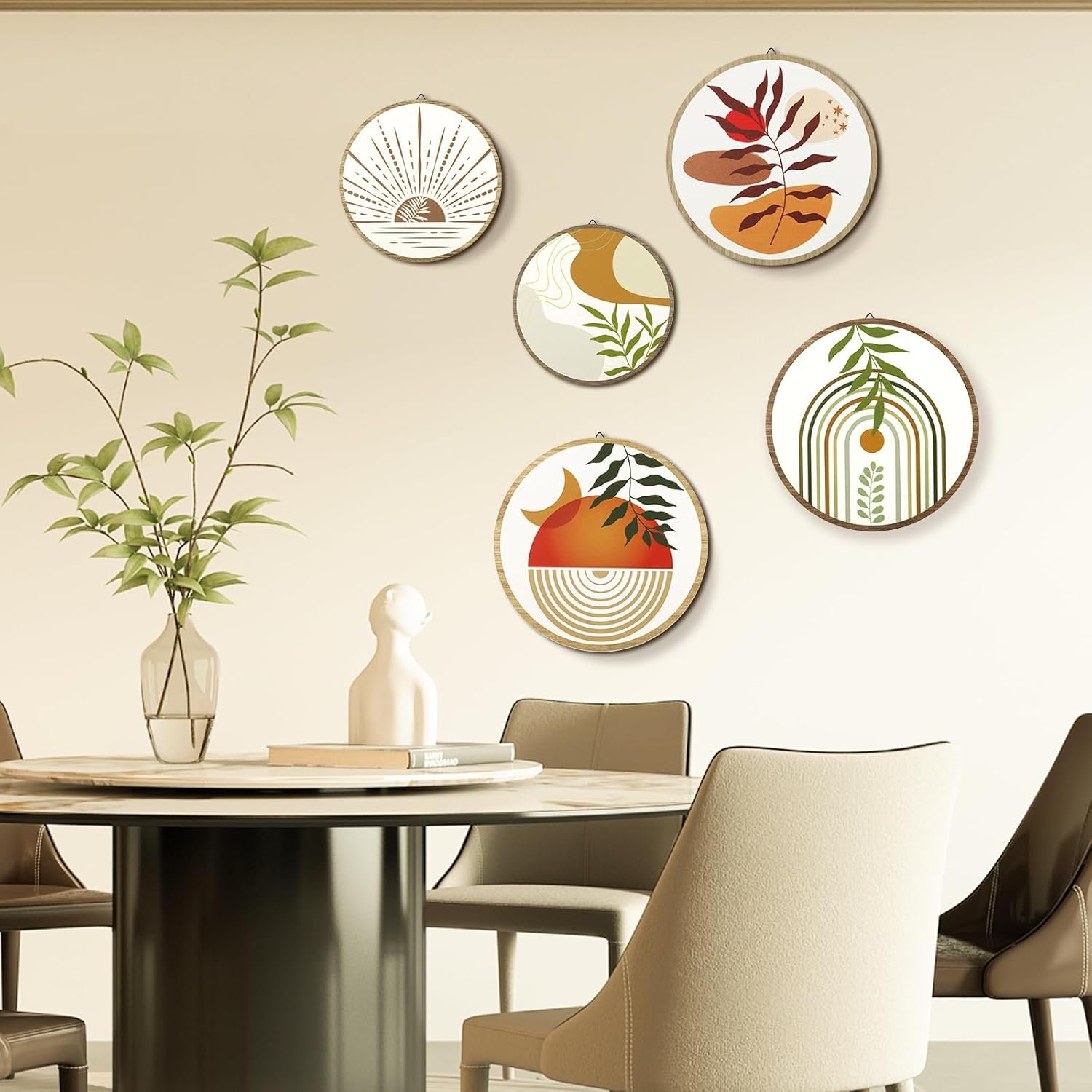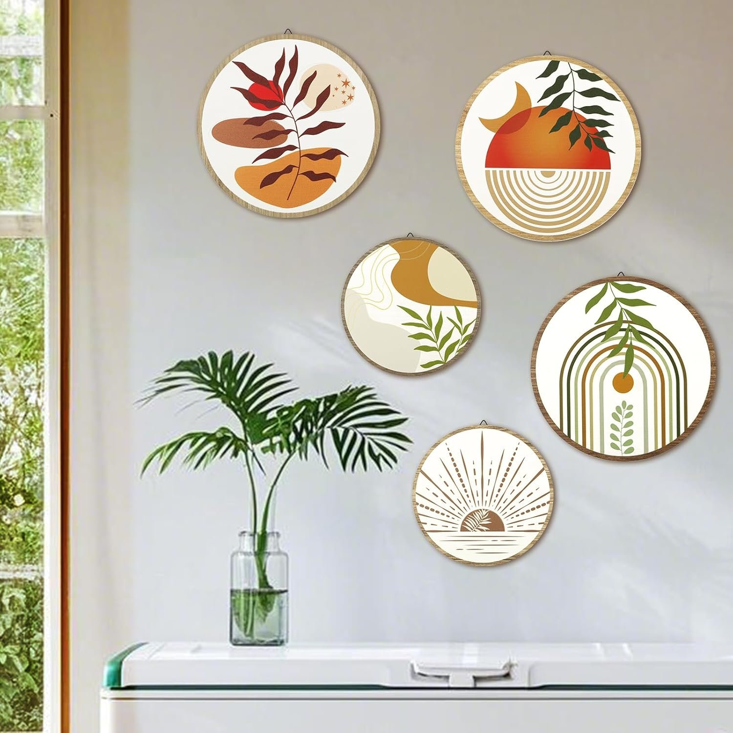 Multi-Space Versatility: Transform bland rooms into serene retreats! This bohemian wall decor set adapts effortlessly to bedroom wall decor, bathroom accents, yoga studio walls, or cozy cabin interiors. The neutral palette and abstract leaf motifs pair with any interior style, from Scandinavian minimalism to eclectic boho-chic.