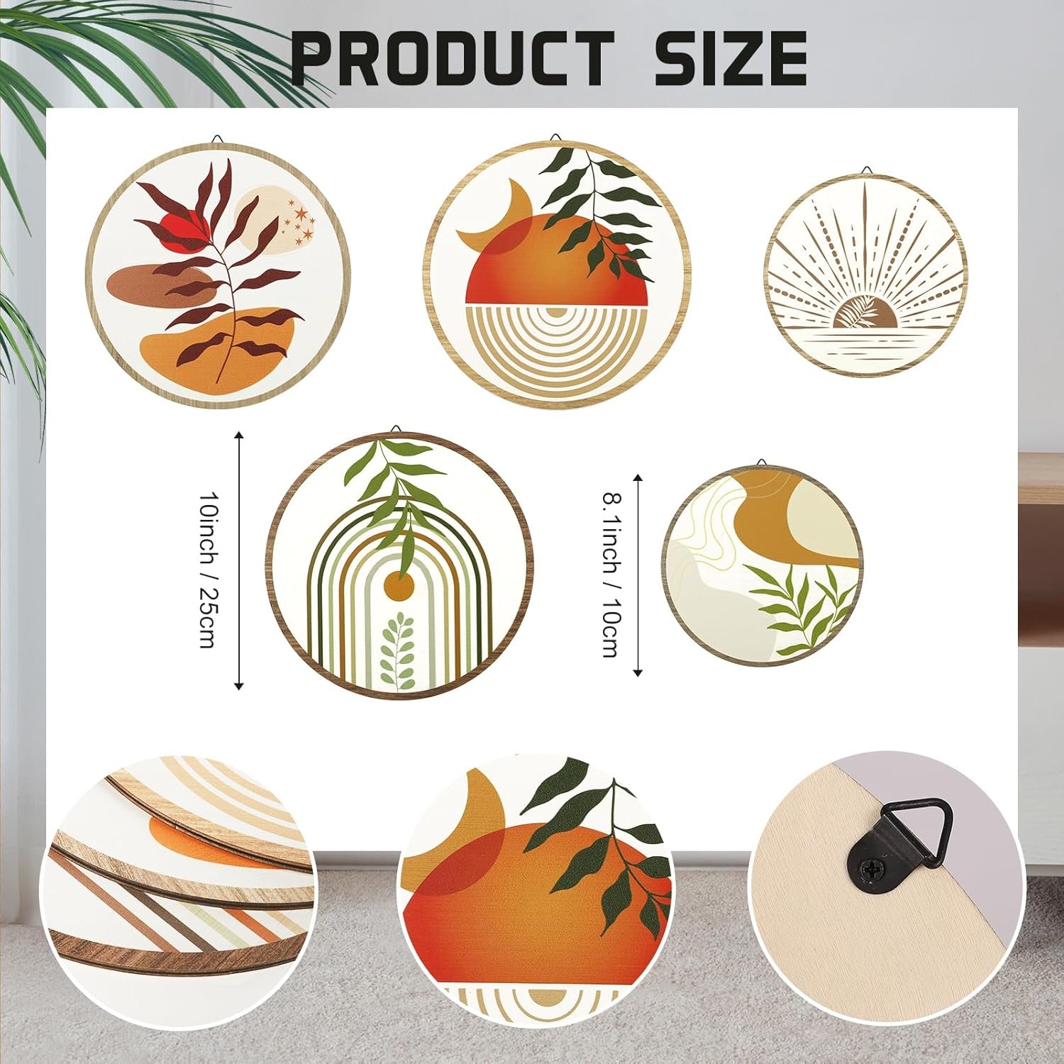 Crafted for Mindful Living: Our boho wall decor features sustainably sourced birch wood with a matte finish, designed to withstand daily wear while maintaining vibrant earth tones. Each 10″ piece combines minimalist wall art geometry with organic bohemian patterns, creating a wall decor aesthetic that balances calm and character.