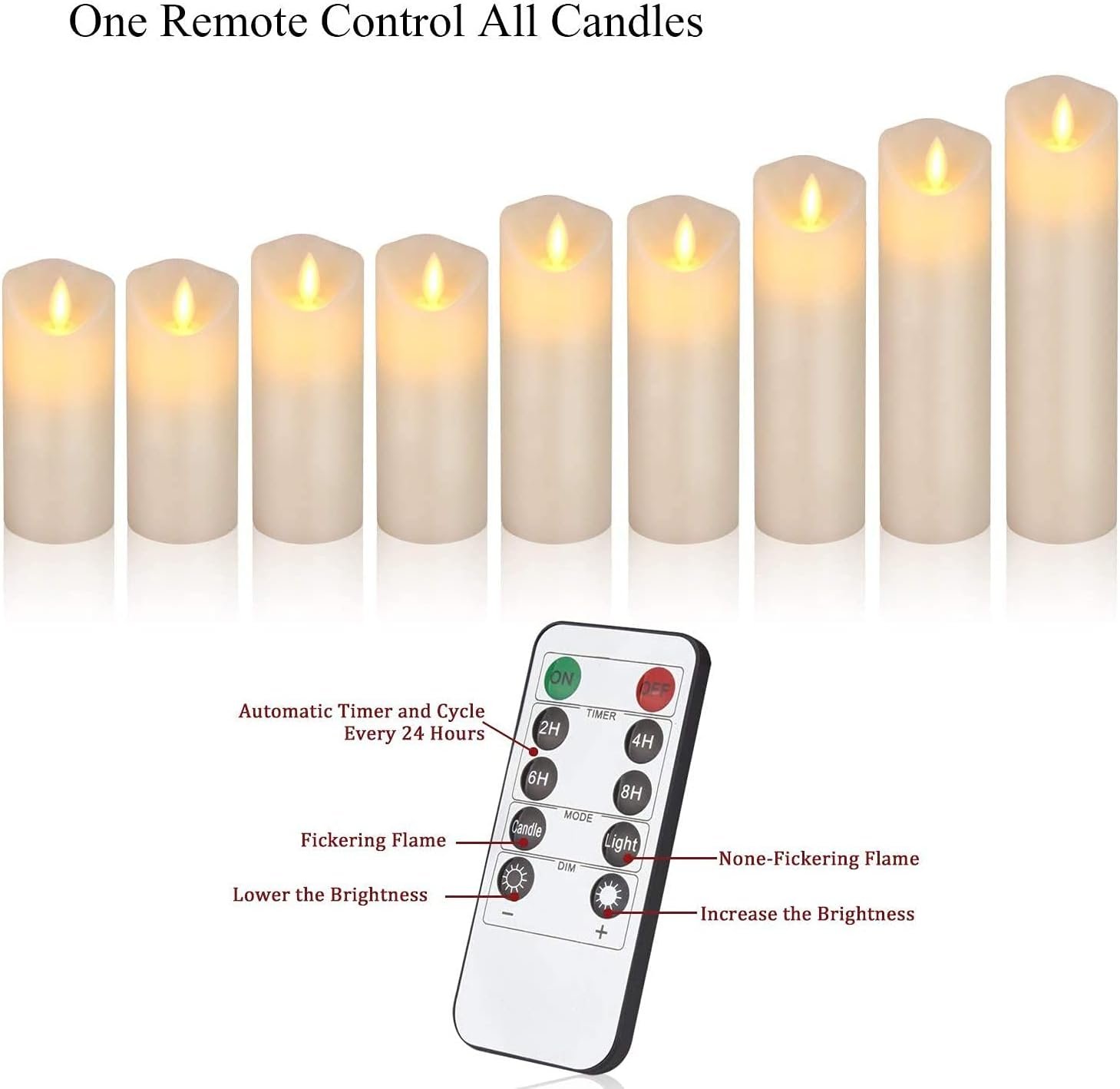 10-KEY REMOTE CONTROL with 16.4-foot range lets you display candles in hard-to-reach places. Timer feature lets you schedule your candles in 2-, 4-, 6- and 8-hour increments, cycling every 24 hours