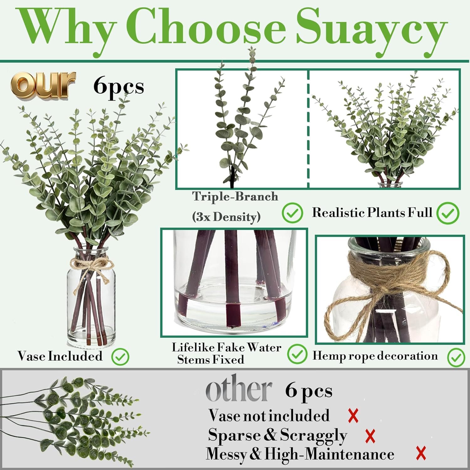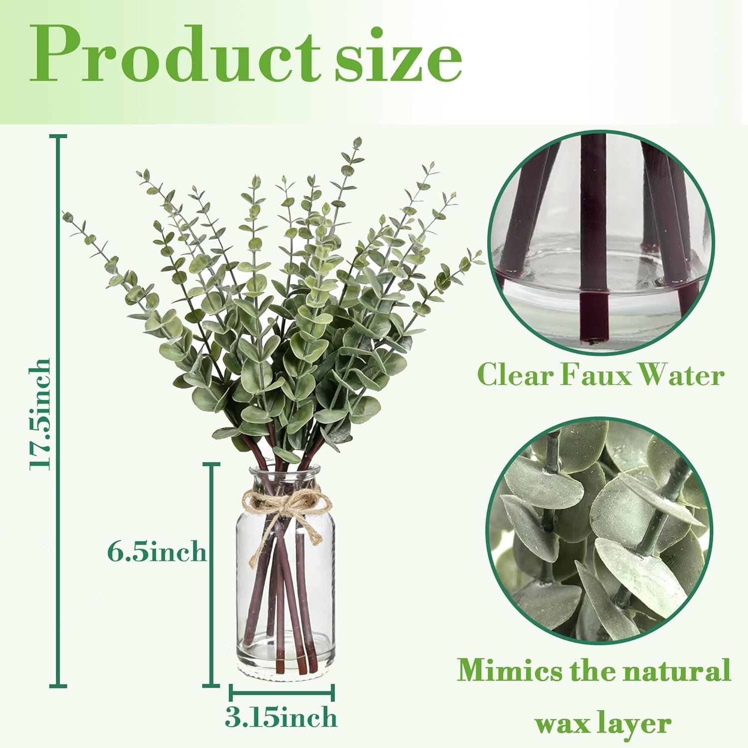 【Crystal Clear Faux Water for a Lifelike Feel】 Experience the beauty of eucalyptus in a glass vase with our realistic fake water. The stems are professionally secured with faux water (clear resin), so they never wobble or fall over, saving you the trouble of constantly rearranging them. The crystal-clear resin is poured to a perfect height to look just like a fresh vase of water, bringing a touch of everlasting spring to your home decor.