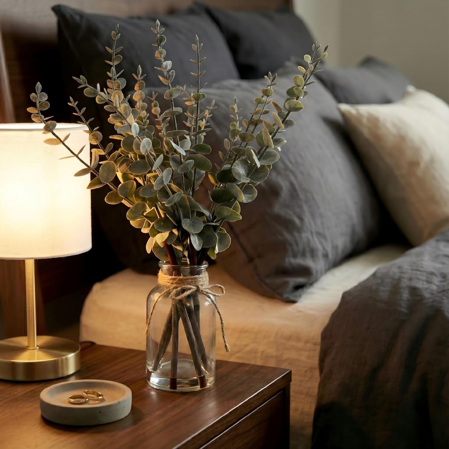 Artificial Eucalyptus Stems in Glass Vase with Faux Water