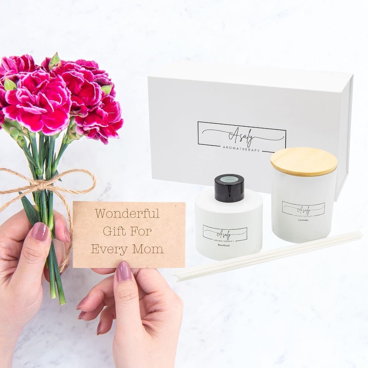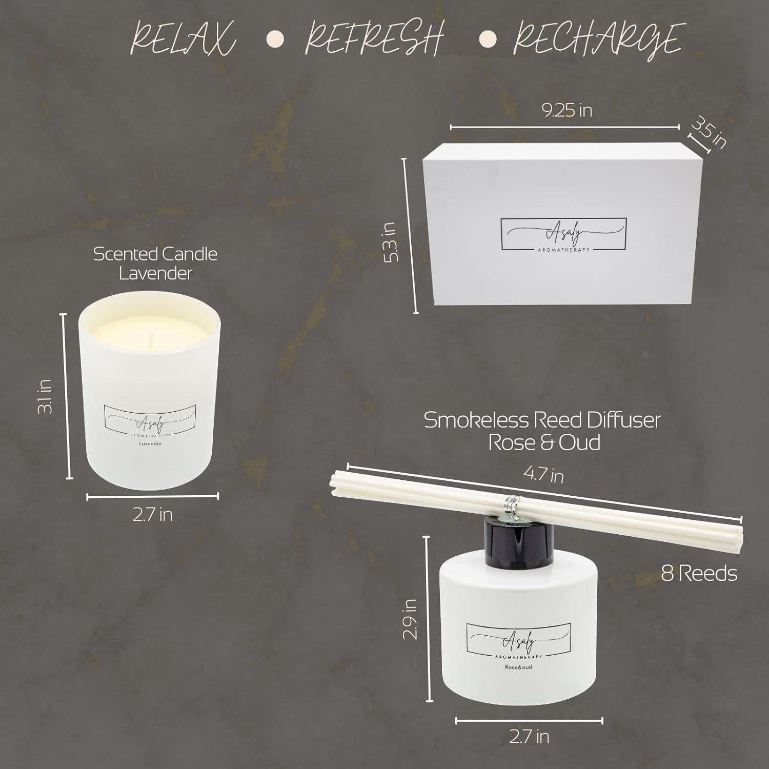PERFECT GIFT SET – This high-quality gift box includes a scented candle and a smokeless reed diffuser. It is the perfect gift for your mom, wife, or friend.