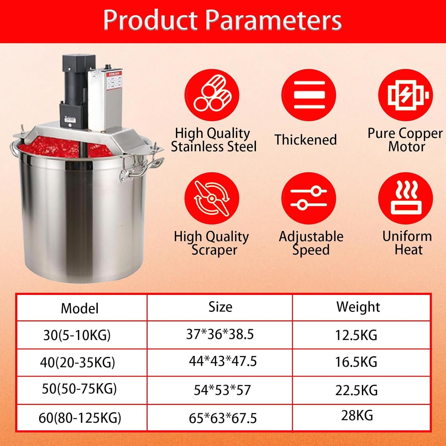 【Versatile Commercial Use】This Stainless Steel Food Mixer is Ideal for Creating a Variety of Products, Including Ketchup, Jam, Chili Sauce, Hot Pot Base, and Solid Fillings. Perfect for Restaurants, Hotels, Food Factories, and Catering Services. Enhance Your Culinary Creations with This Reliable Kitchen Equipment Designed for Efficiency and Durability.