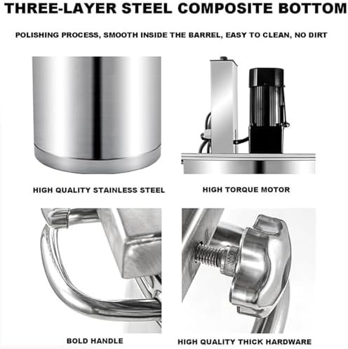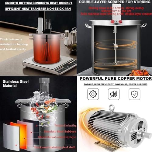 Premium Automatic Food Mixer featuring a Reinforced Stainless Steel Barrel and a Three-Layer Bottom Design for Even Heating. The Food-Grade Inner Layer ensures safety, while the High-Thermal Conductivity Aluminum Middle Layer optimizes performance. The High-Magnetic Conductivity Stainless Steel Outer Layer enhances durability, making it an essential tool for your kitchen.