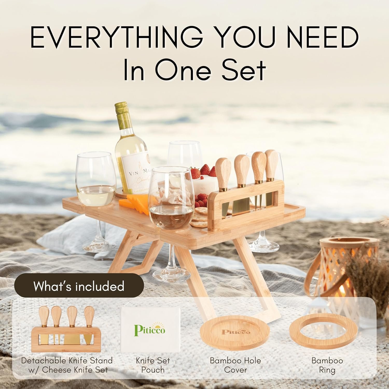 Elegant Wine Charcuterie Board: Host unforgettable picnics or cozy indoor wine nights with this portable outdoor wine table designed to hold your favorite snacks and drinks in style.