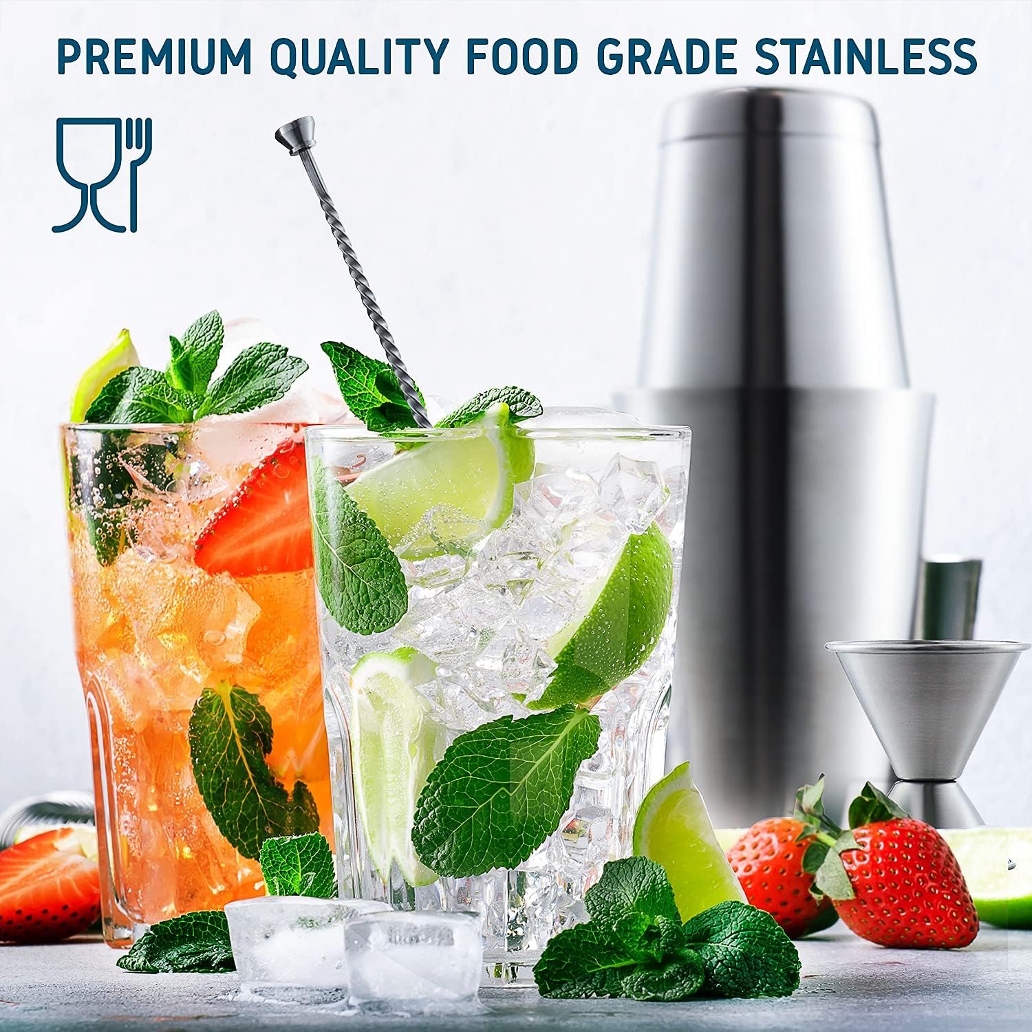 Professional Bartender Set: Our shaker set, bartender kit is made from commercial-grade stainless steel. Rustproof and dishwasher safe, this drink mixing set is built to last.