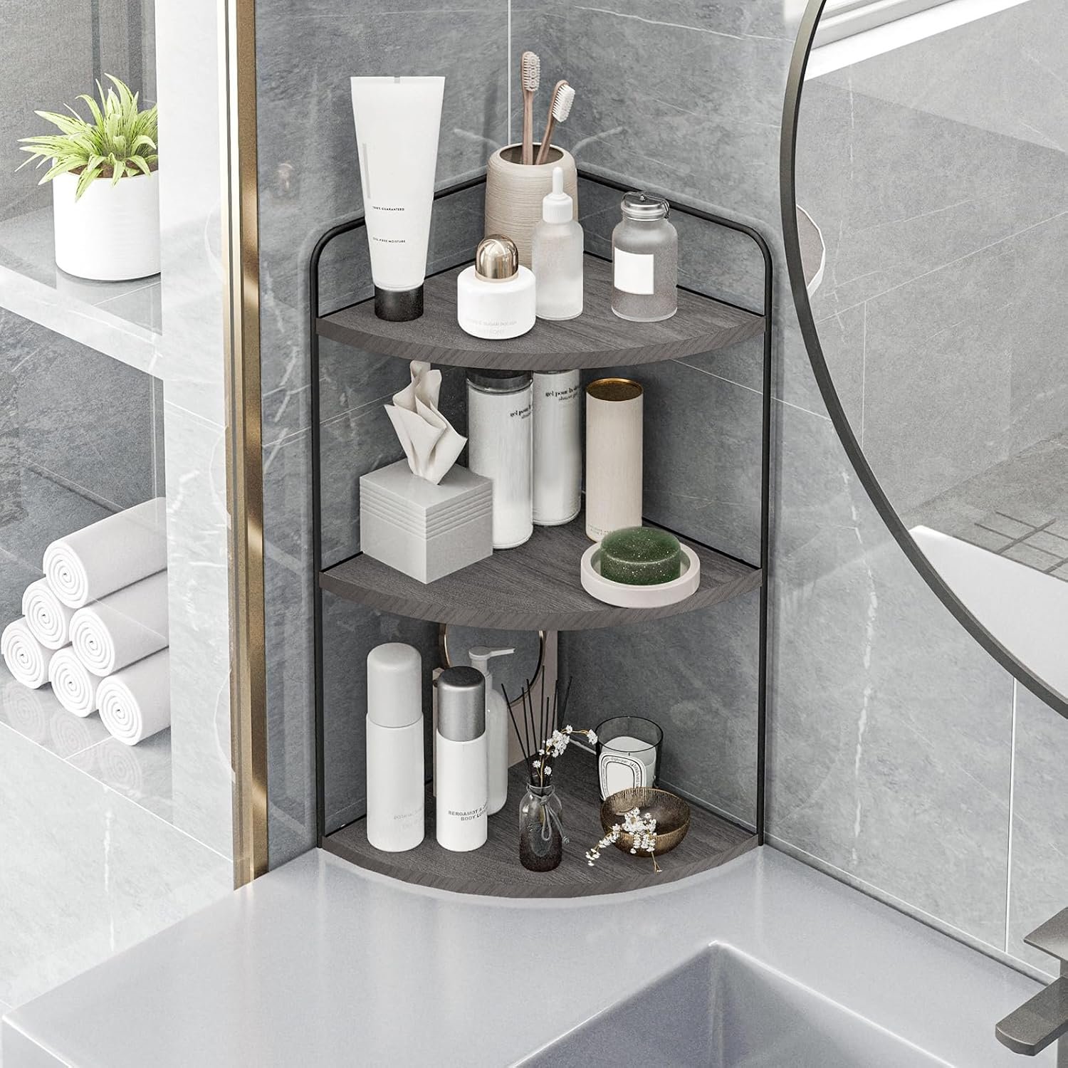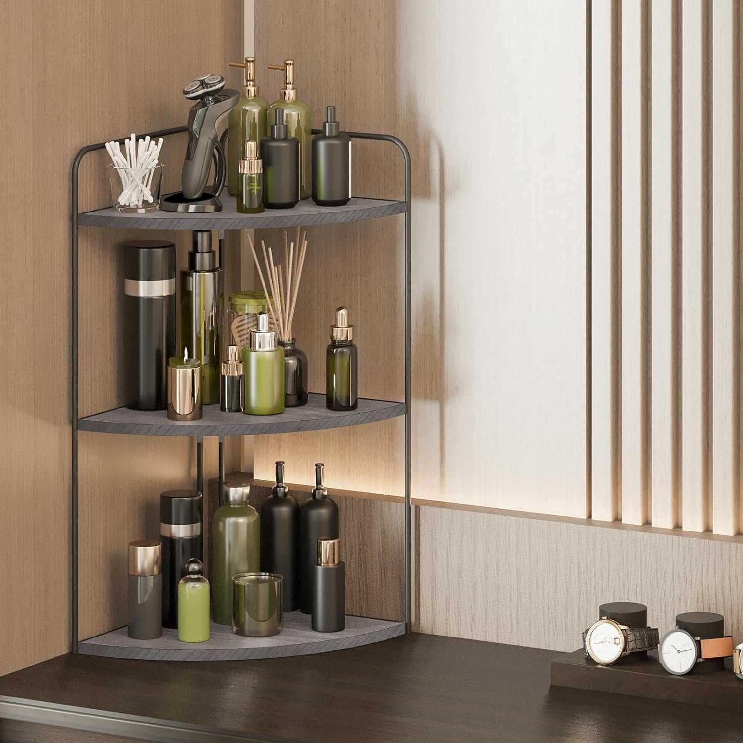 PERFECT ORGANIZER:Corner bathroom counter organizer can make everything organized and neat in your bathroom.the skincare organizer can hold toothbrush,hand soap, cotton balls,and other toiletries in the bathroom.