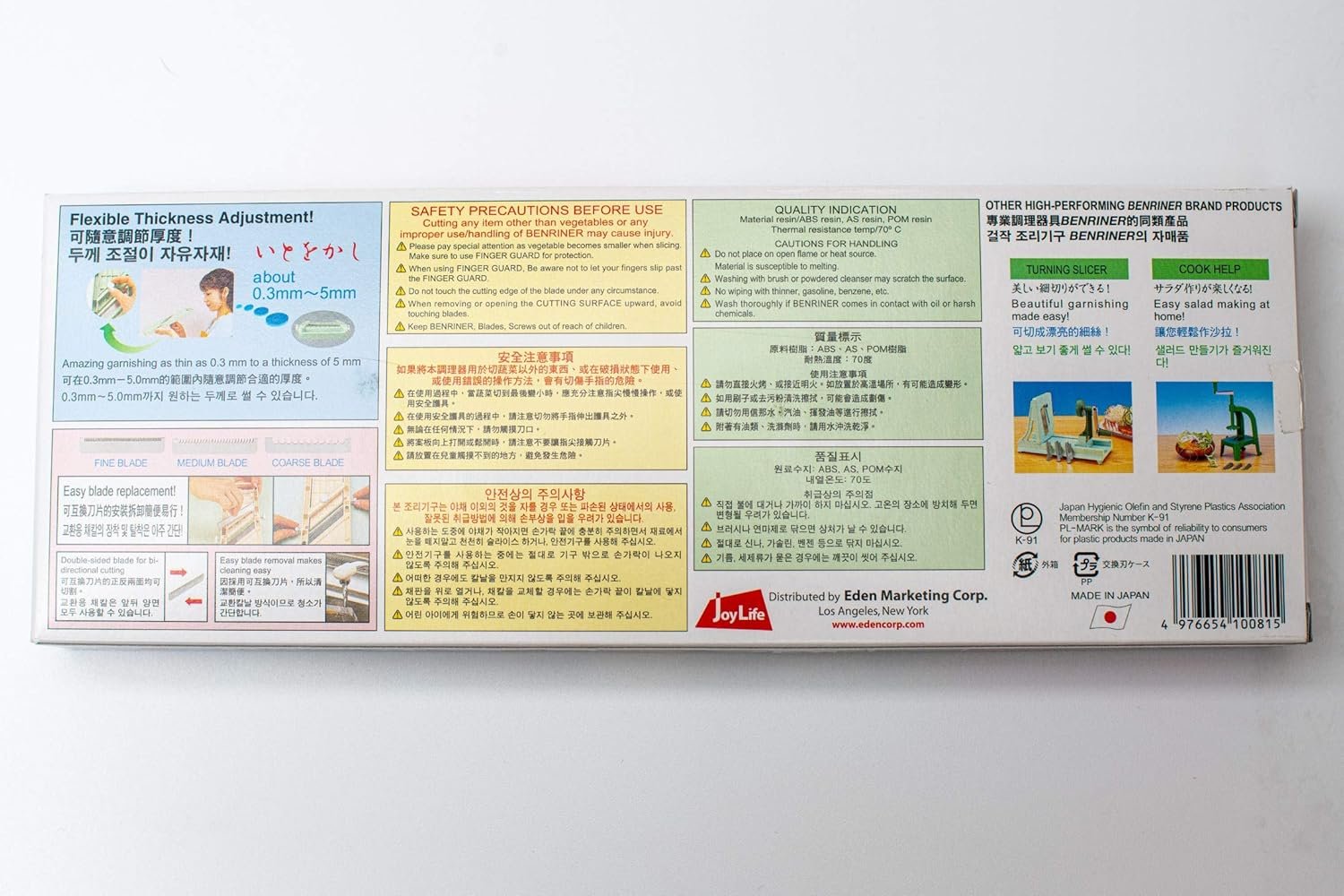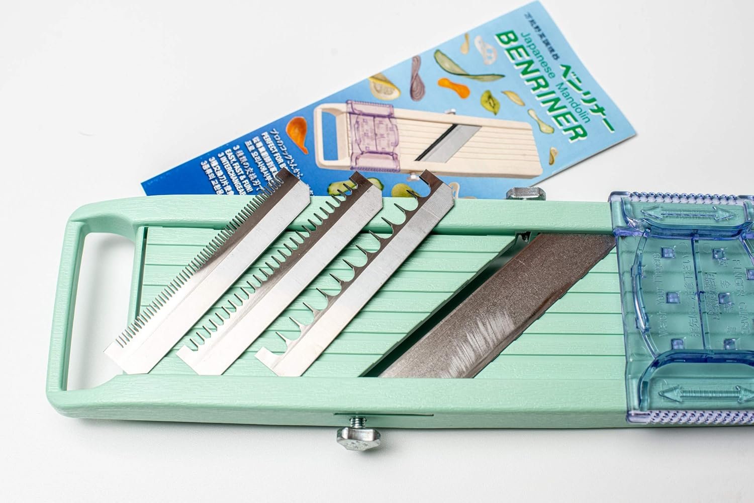 Also with the coarse replaceable blades the Benriner is capable of cutting slices of three different sizes