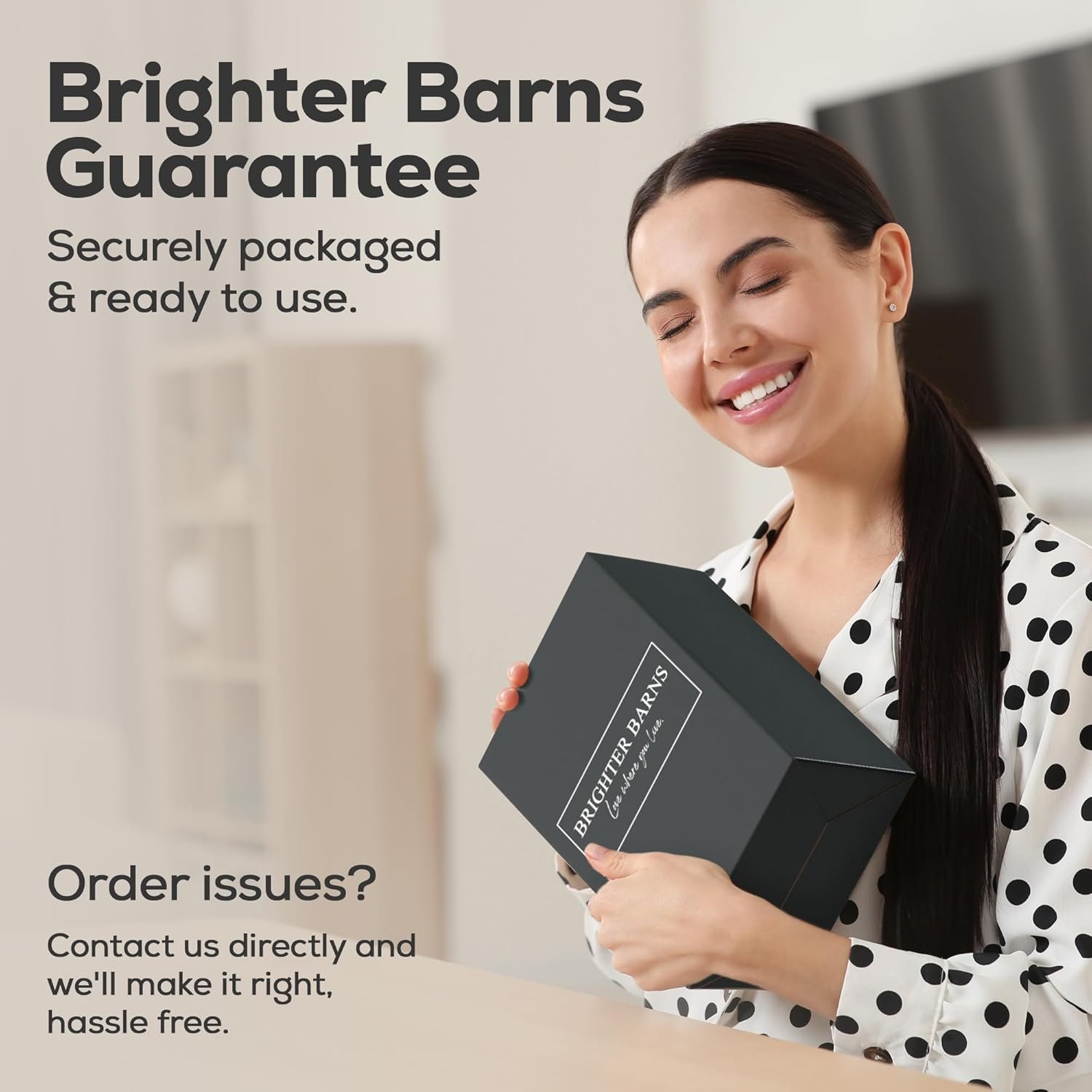 NO HASSLE, BRIGHTER BARNS SUPPORT: We stand by our products and a best-in-class customer experience. Feel confident knowing our fast responding customer service team is always ready to help. Trust Brighter Barns for a hassle-free customer experience where your satisfaction is our top priority.