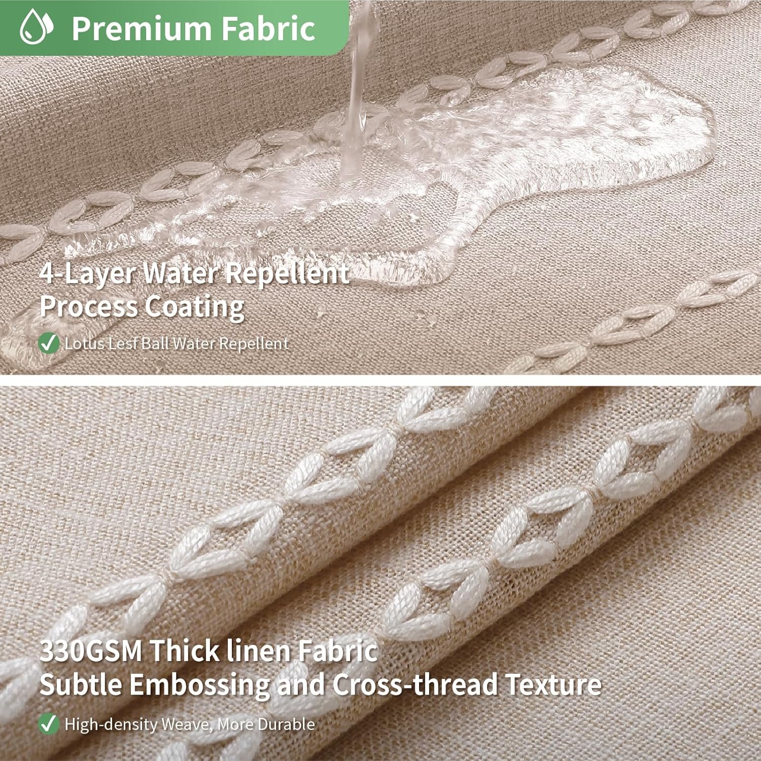 【Premium Linen Blend Fabric】:This taupe shower curtain with a 3D embroidery stripe design is crafted from high-quality, 330GSM linen blend woven fabric, making it ultra-thick, wrinkle-free, and durable,while still feeling soft to the touch