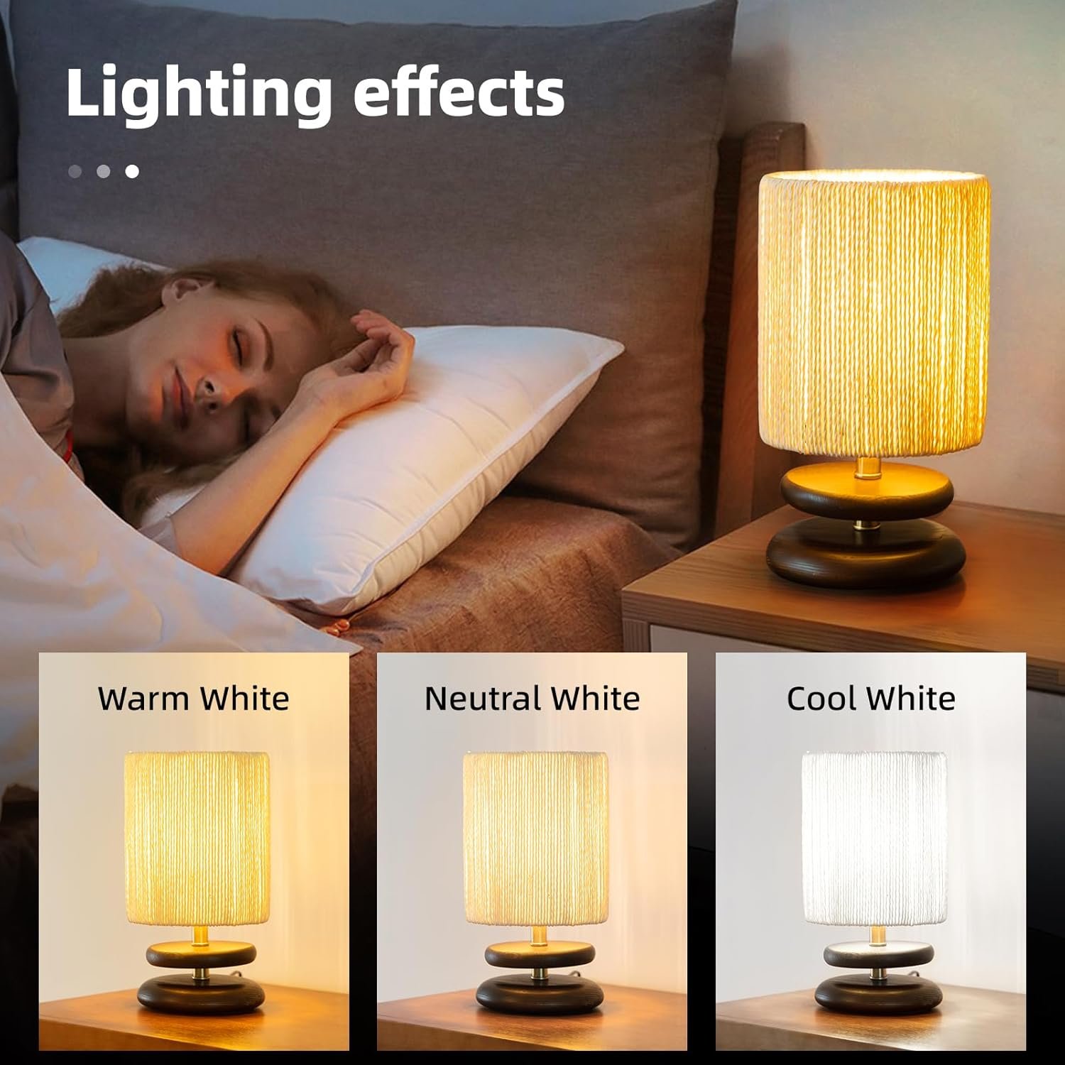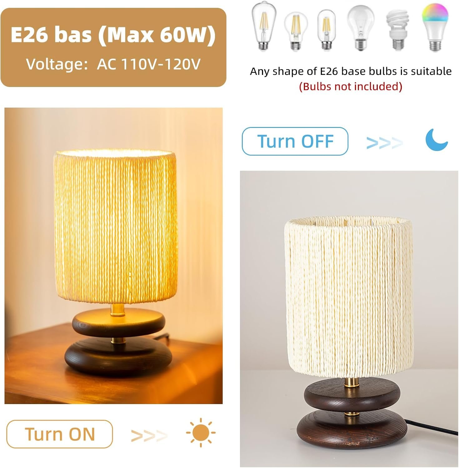 【Bohemian table lamps】100% Handmade rattan lampshade with rubber solid wood base, and its natural style blends perfectly into the home decor, adding a natural feel to your room. This bedside table lamp is makes a perfect night light in your home, and also a great gift for your families, friends, or your colleagues.