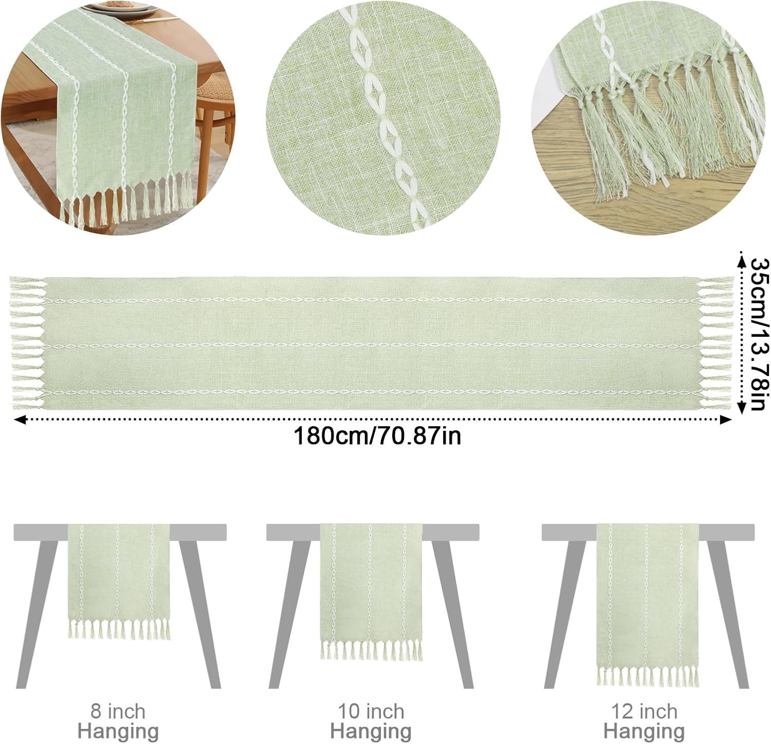13 reviews for Boho Table Runner, Rustic Farmhouse Cotton and Linen Table Runner with Hand-Tassels, Elegant Kitchen Table Runner for Daily Dining Bedroom Decor and Event Holiday Party Decor 13×72 inches, Sage Green