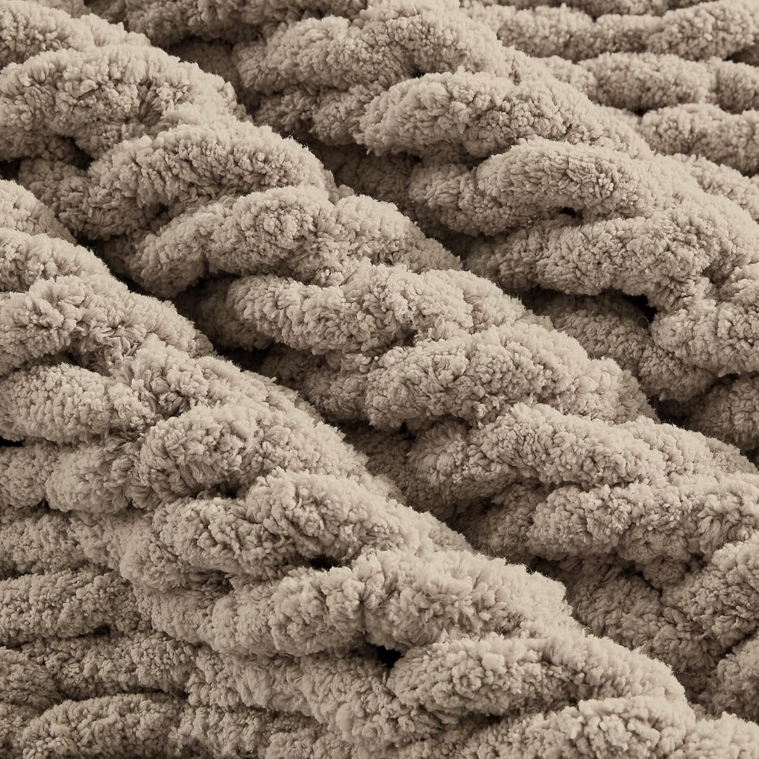 Carriediosa Chunky Knit Throw Blanket 50″ X 60″, 100% Hand Made Large Chenille Loop Yarn Soft Fluffy Throws for Couch Sofa Bed, Big Crochet Cozy Heavy Thick Cable Woven Blankets, Taupe