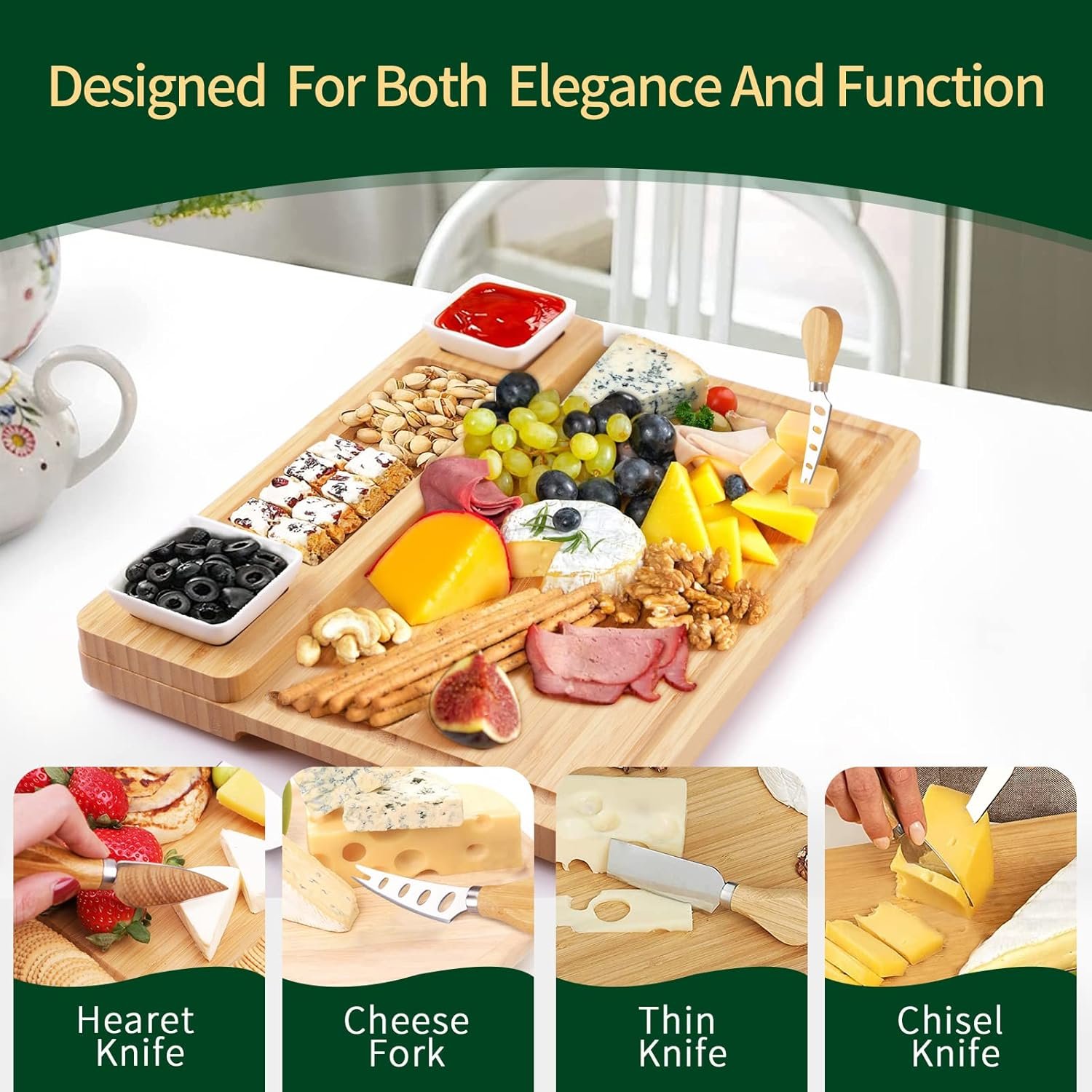 YZS Bamboo Cheese Platter & Charcuterie Board will help make your hosting dreams come true.