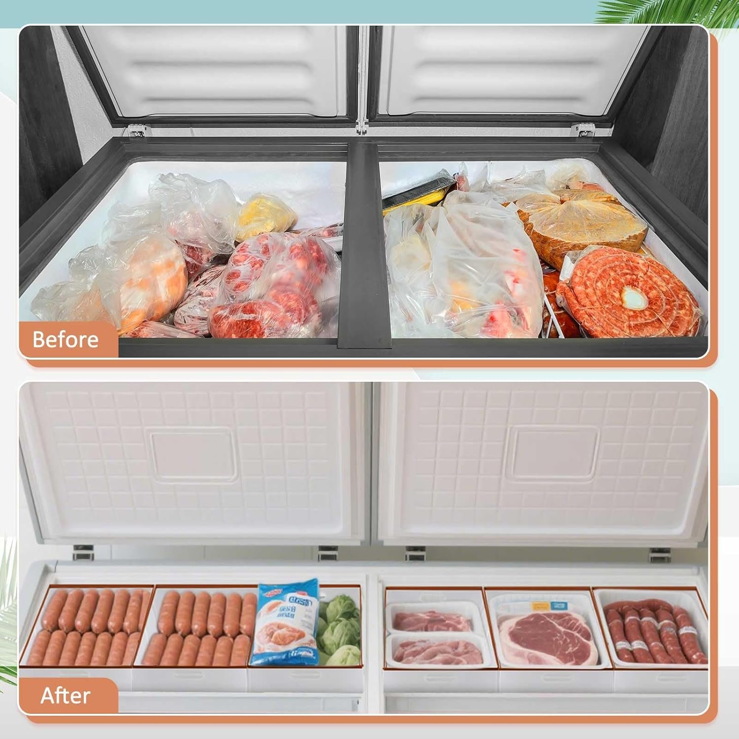 Durable PP Material: our freezer organizer bins made of PP material, waterproof and withstand low temperature refrigerator environment, strong load bearing, not easy to deformation; Whether inside or outside the refrigerator, they provide a reliable storage solution