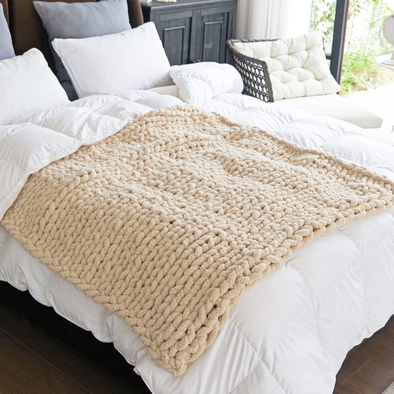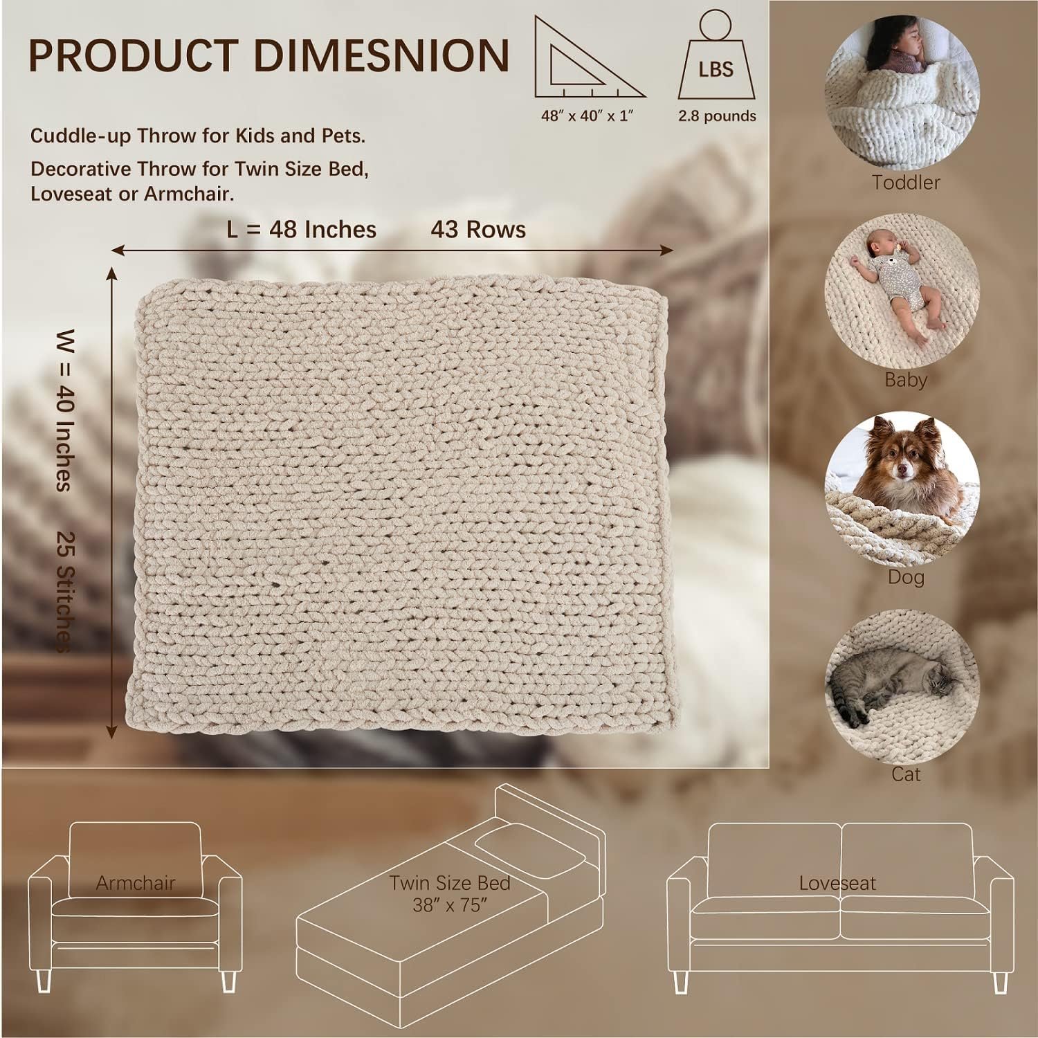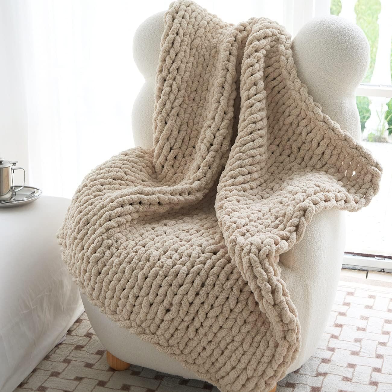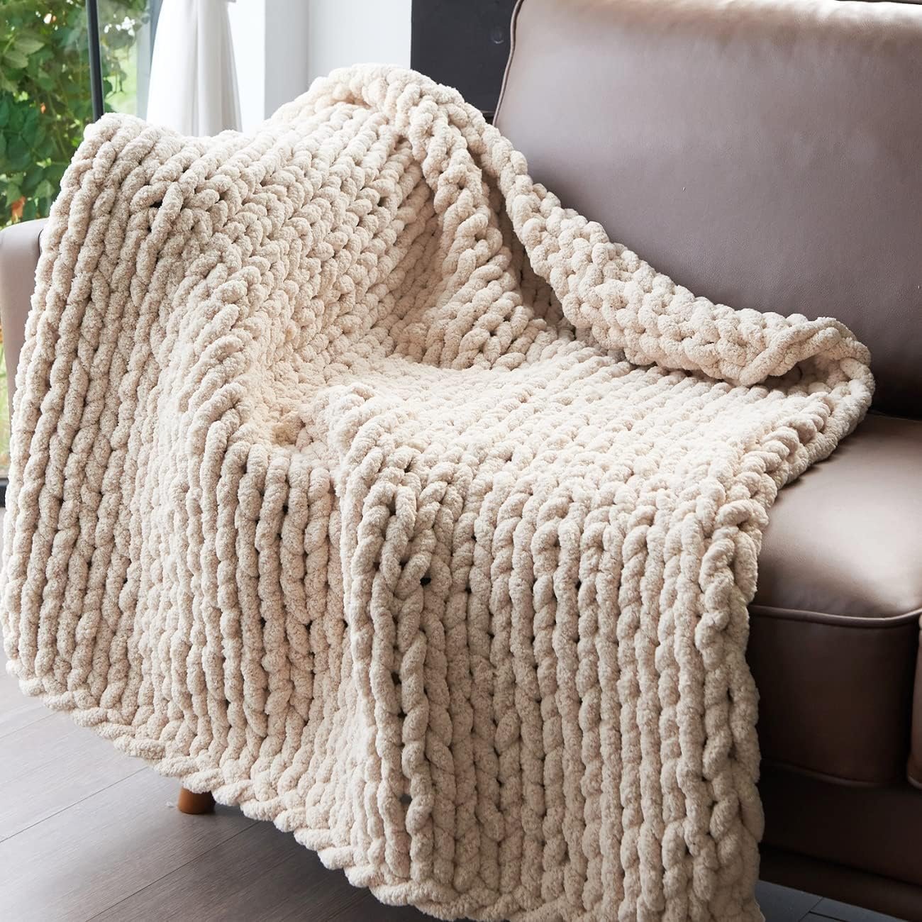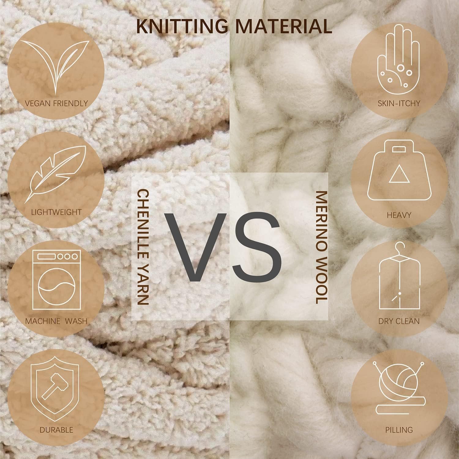 Long-Lasting: Our soft thick blankets and throws are knitted with premium chenille yarn to prevent shedding and stiffness, on chilly days, wrap you and your loved ones in the chunky blanket and enjoy this cuddly throw together
