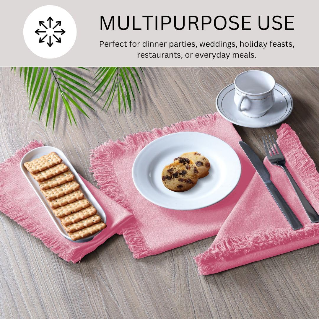 FARMHOUSE LOOK FRINGED EDGES: These cloth napkins feature delicate fringed edges, giving them a charming, handcrafted aesthetic. The fringes add a bohemian, farmhouse, or rustic appeal, making them versatile for both modern and traditional table settings.