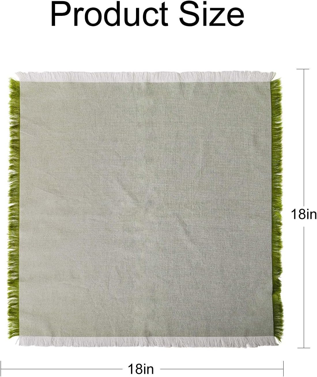 Cloth Napkins Set of 8 with Fringe, Handmade Cotton Napkins Reusable, Soft Dinner Napkins Washable 18 x 18 Inches for Thanksgiving/Christmas/Weddings/Parties Table Decoration(Dark Green)