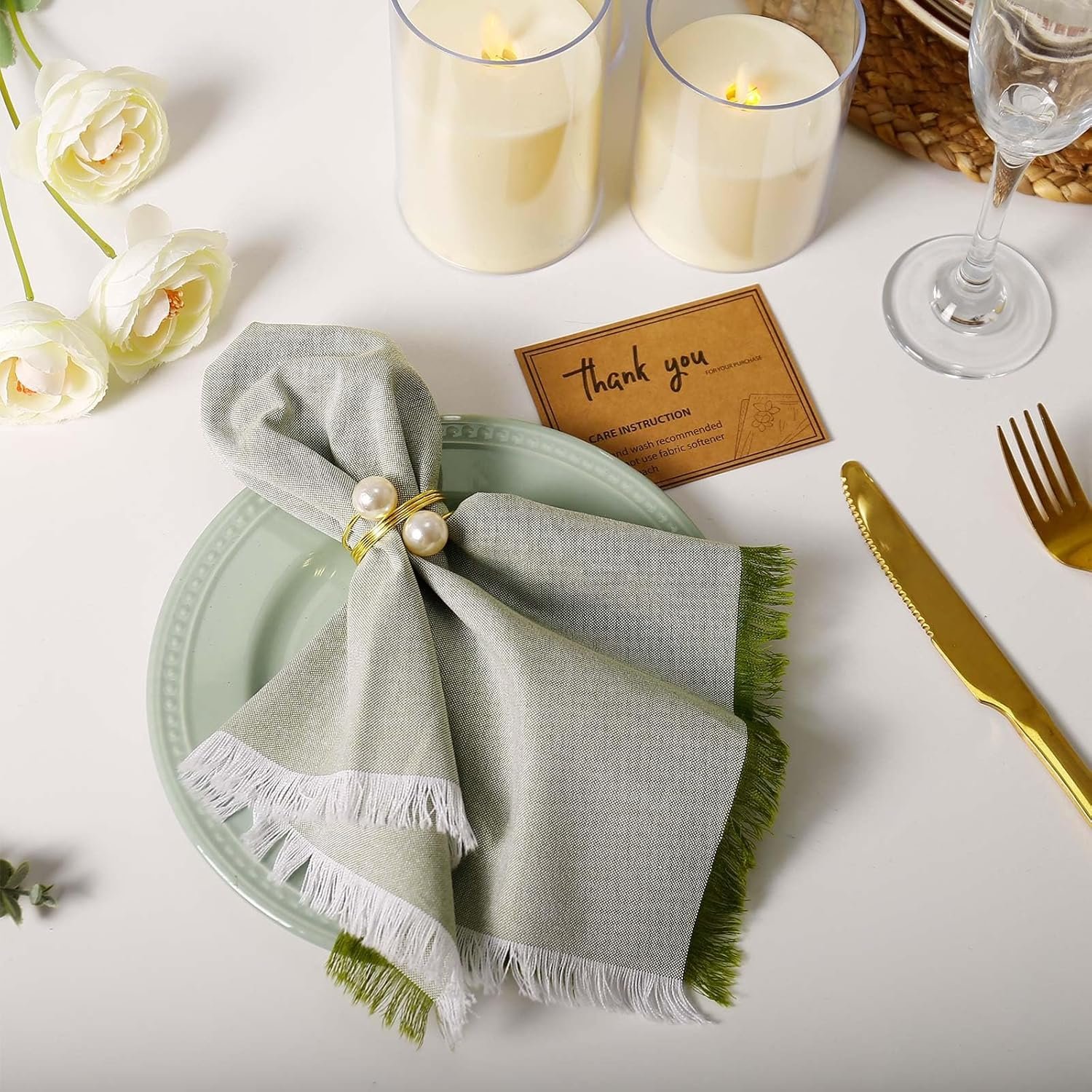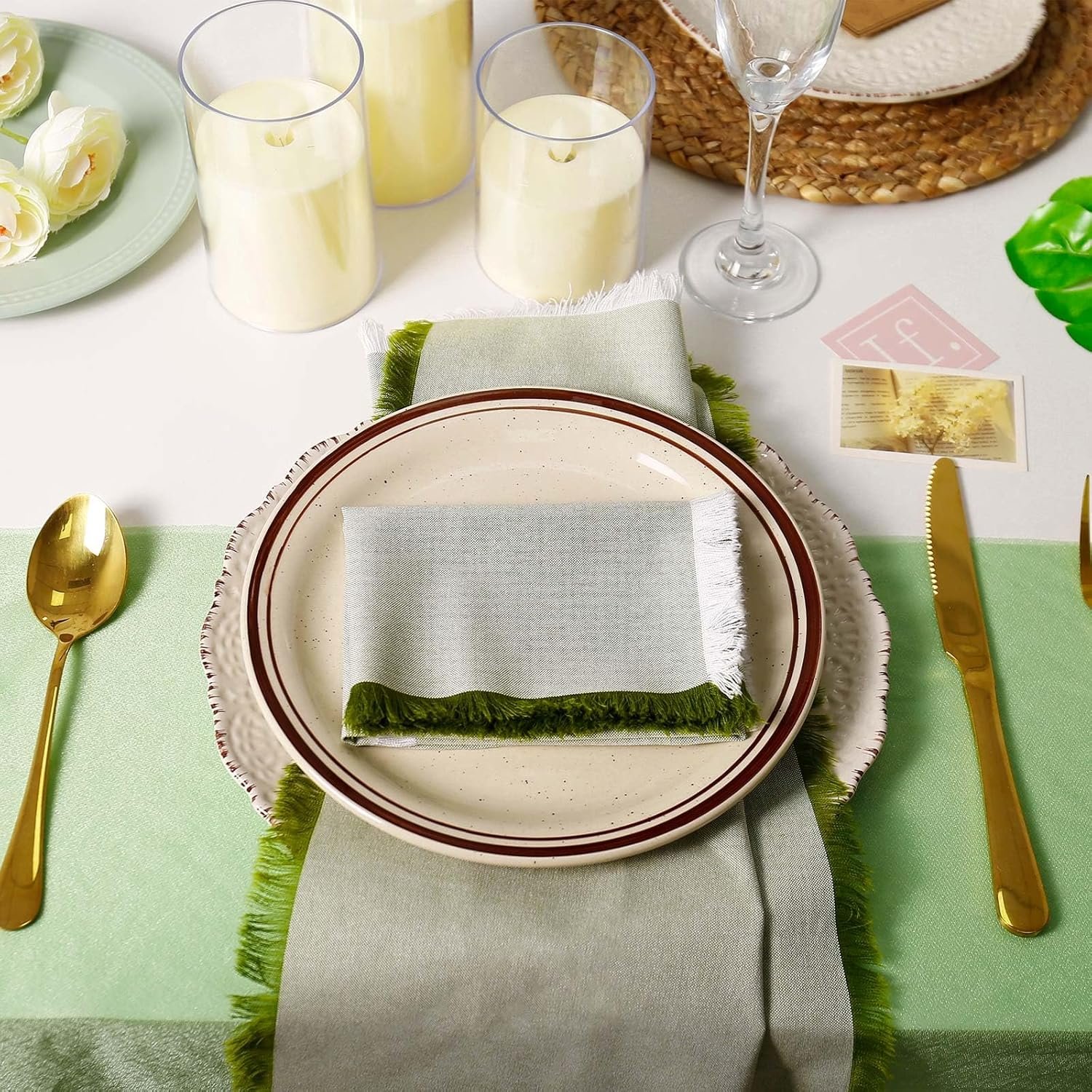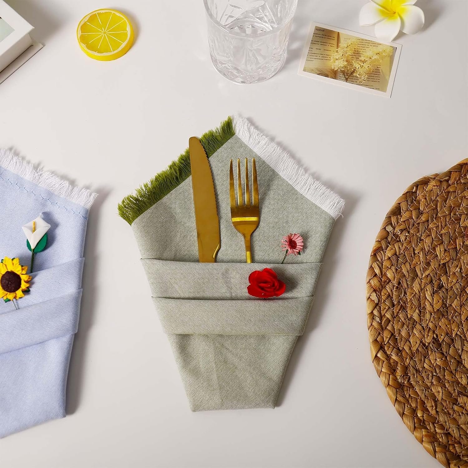 Soft Cotton Material with Two Colors Fringe: High quality fringe cloth napkins made of cotton, soft and elegant. Each napkin is designed with different fringe colors to make it special. Please notice: Due to different monitors, the color may vary from the actual item