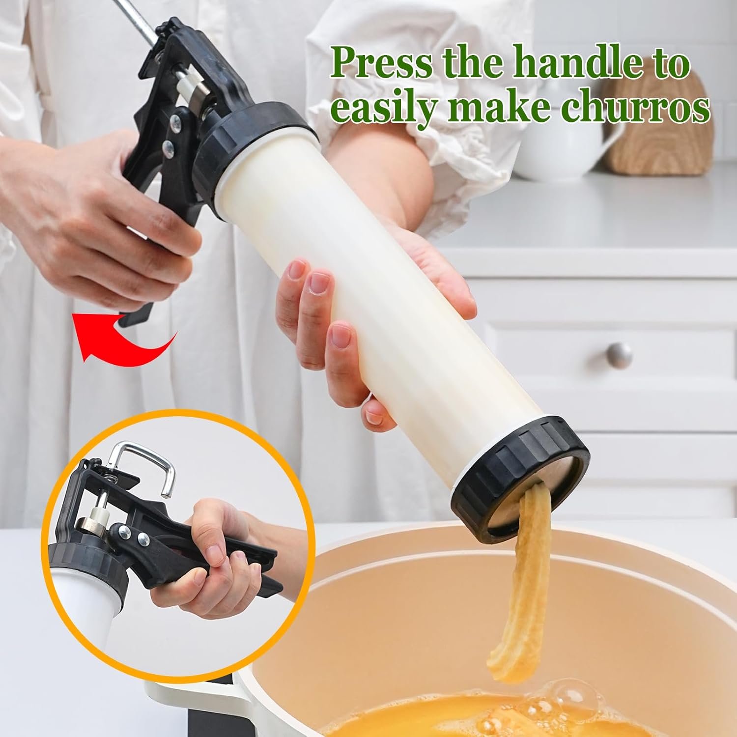 Enhanced 12 Discs & 8 Icing Tips-This maquina de churros machine includes 4 nozzles for classic and hollow churros , 8 cookie-shaped discs, and 8 icing piping tips for decorating cakes and cupcakes