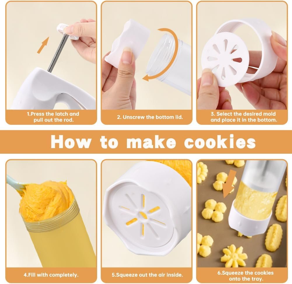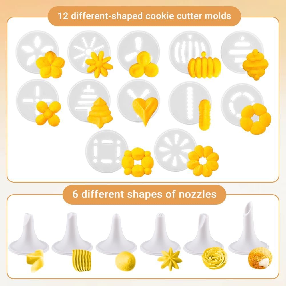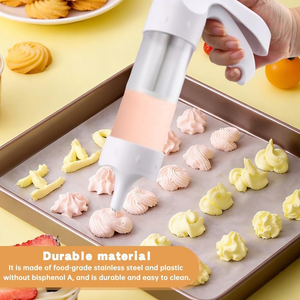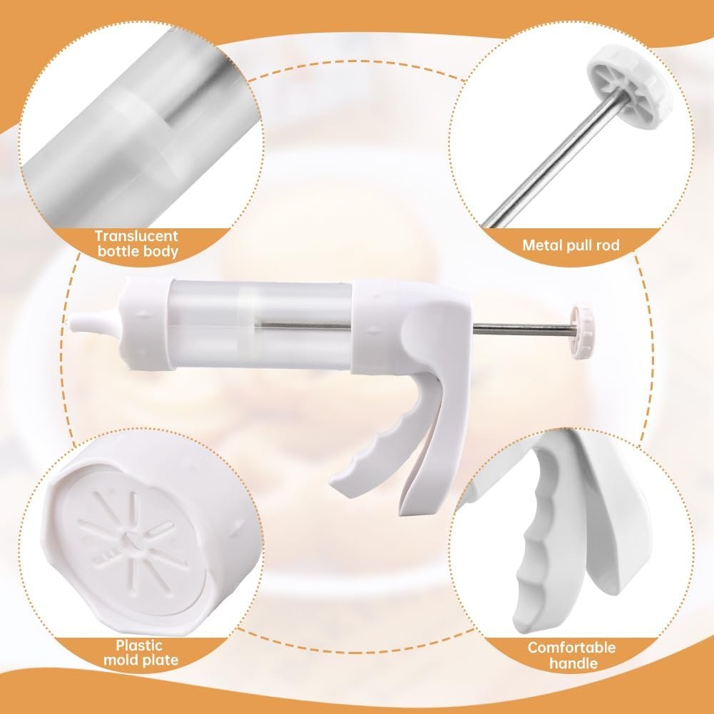 Perfect Results, Every Time: Just fill, attach, and press! Our ergonomic cookie press gun design ensures smooth, consistent cookies with no mess. Bake like a pro in minutes!