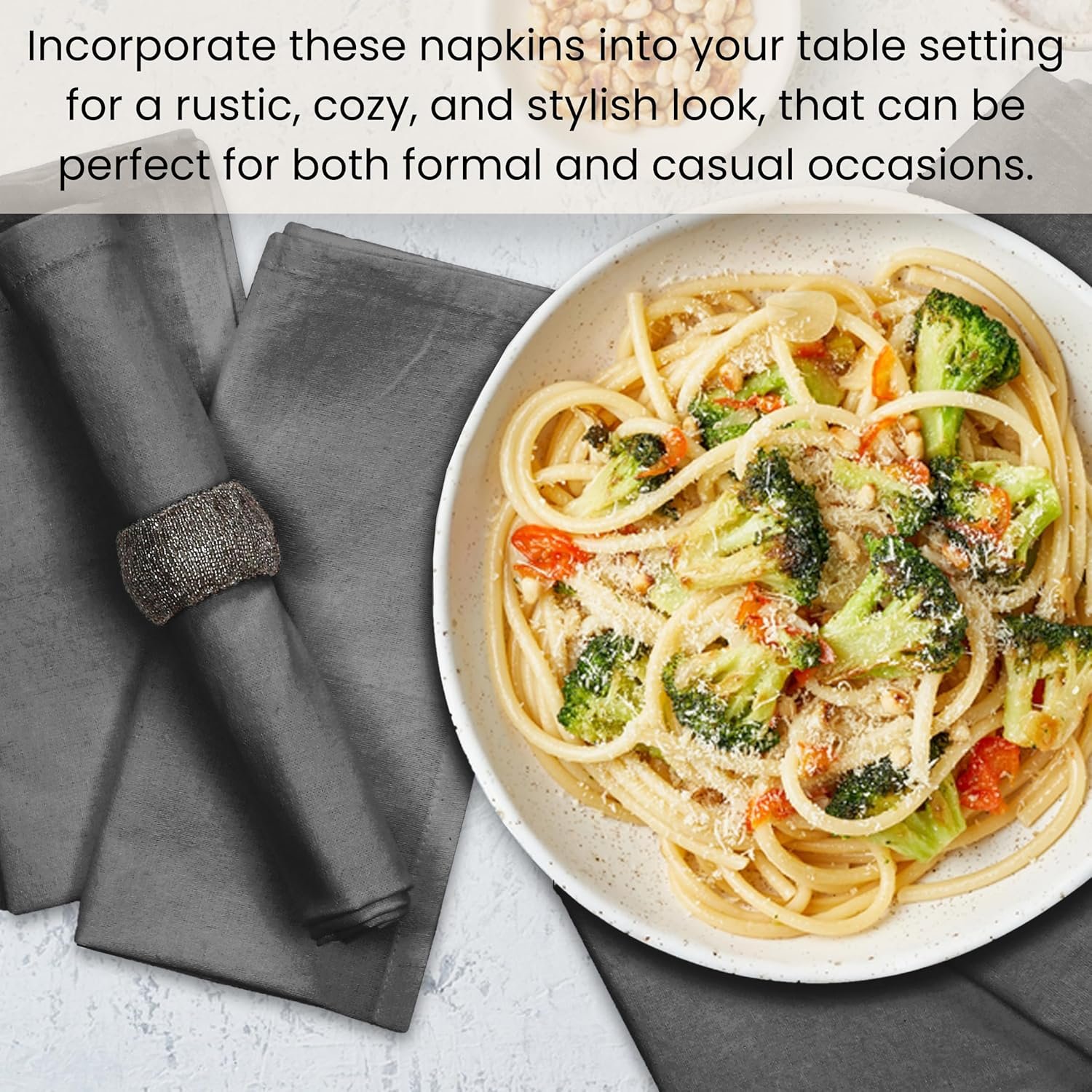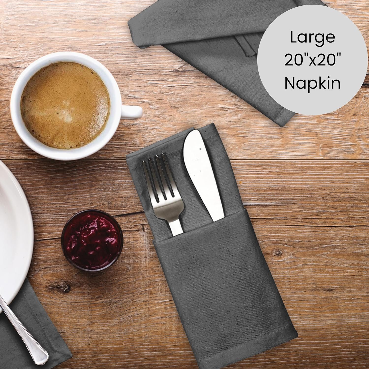 OVERSIZED NAPKINS SET OF 12: Each set contains 12 units of oversized soft, breathable, and comfortable 20×20 inch dinner napkins.