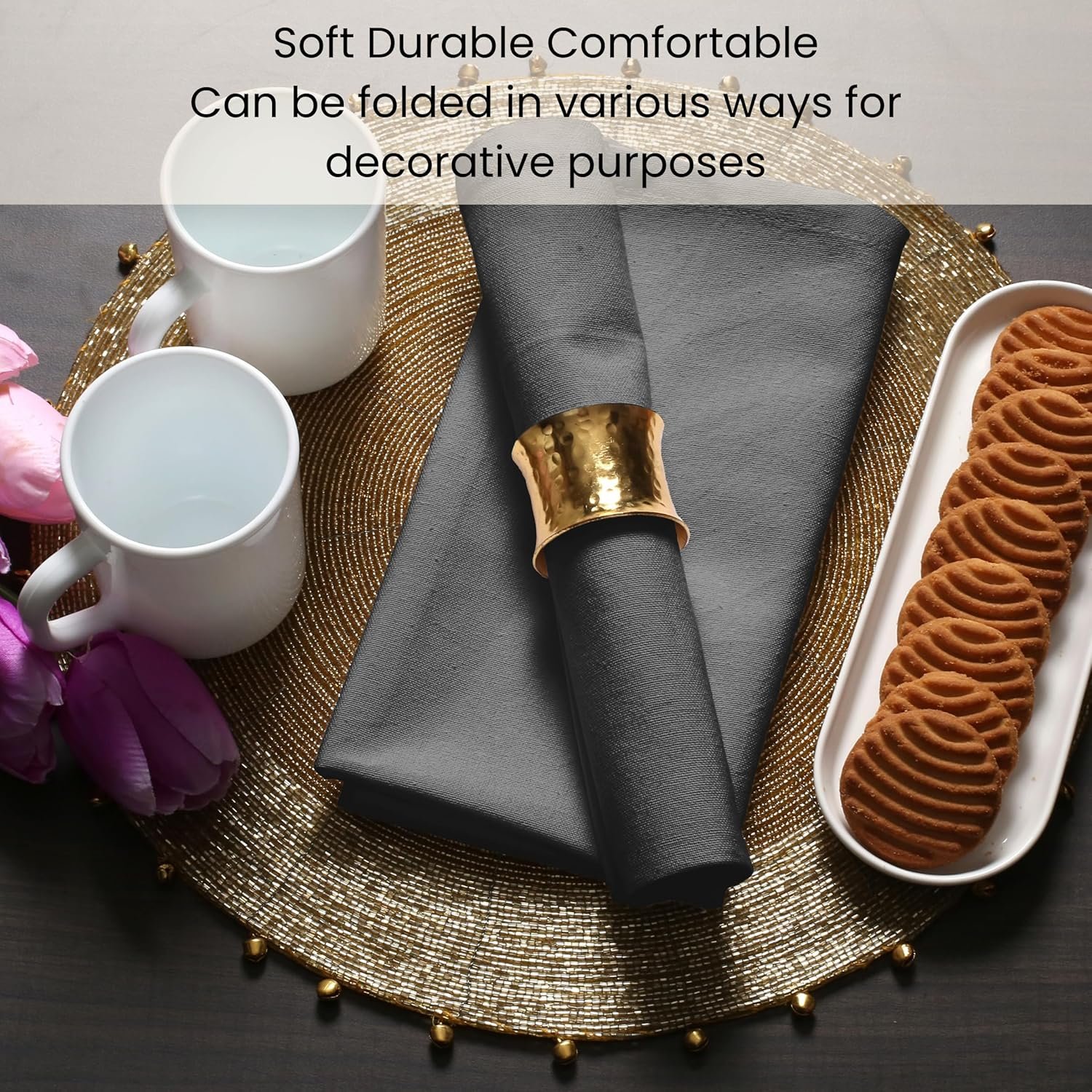 100% COTTON: Check out our dinner napkins which are made of 100% soft cotton fabric for a graceful look.
