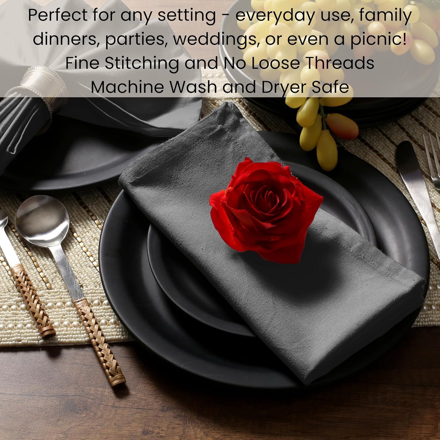 MACHINE WASHABLE & REUSABLE: Easy to maintain, these durable dinner napkins can be machine-washed multiple times in cold water, without having their color fade.