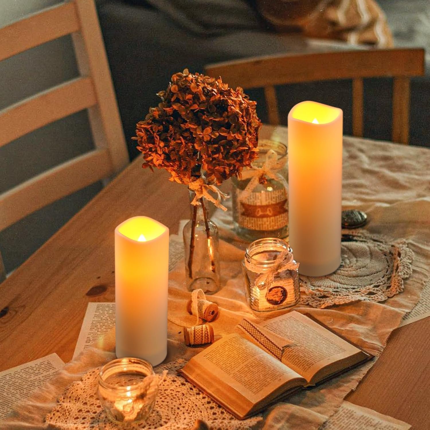 Safety first: These flameless candles can be used without worrying about flames, and there is absolutely no risk of fire or burning. They are safe for families with pets or young children. With an amazing flameless candle set, you can spend a perfect environmental night with peace of mind.