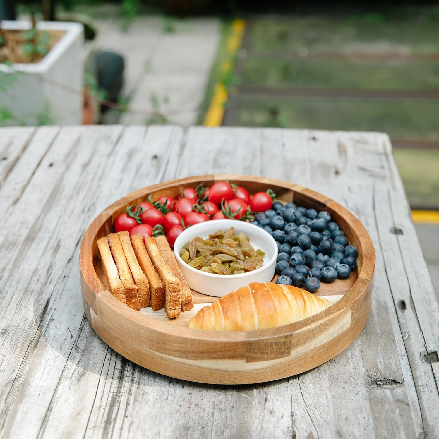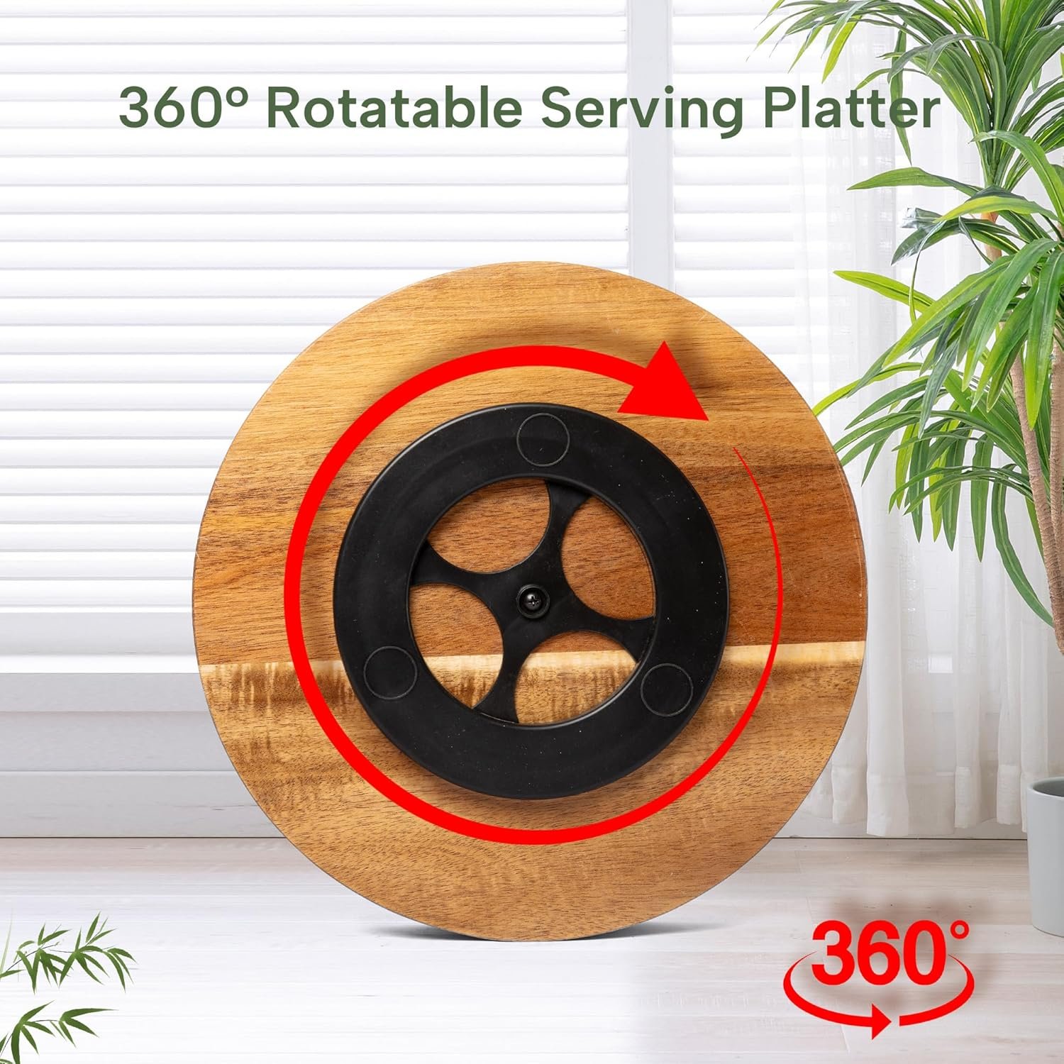 ✅360° Rotation Platter: This farmhouse dinner plate can rotate 360 degrees and slide very smoothly without any noise. No need to worry about tilting or shaking when placing heavy objects on only one side. No assembly required. Perfect snack platter for home, kitchen, parties, picnics, camping, RV, travel and other outdoor activities.
