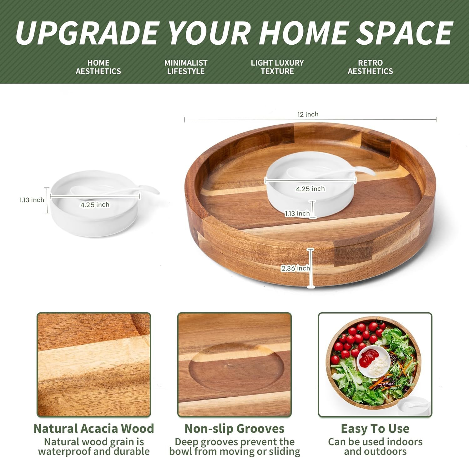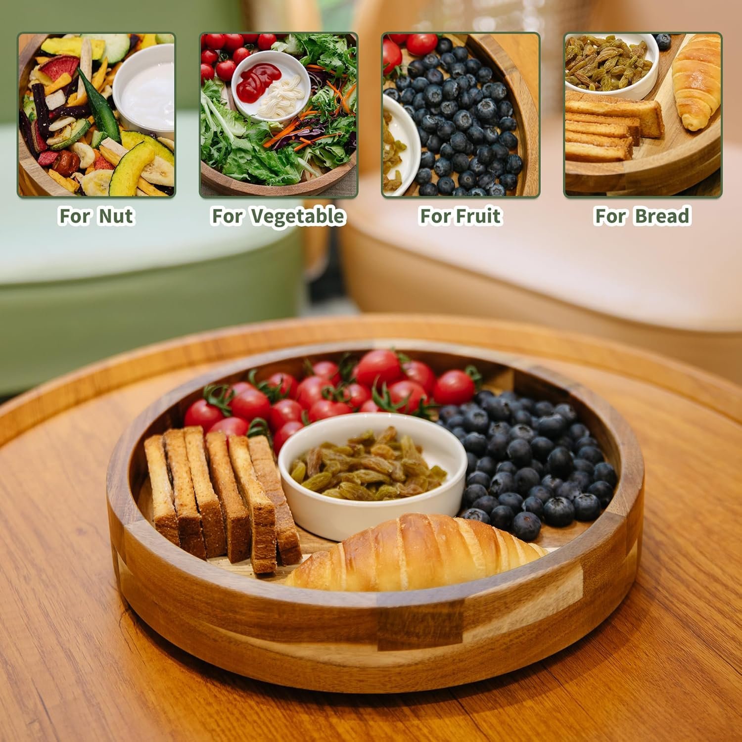 Be the first to review “Defined Deco12in Serving Tray and Platters, Acacia Wood chip & dip Sets for Party, 360° Rotatable Serving Dishes for Chips and Dip, Fruit,Veggies, Candy and Snack, (Including 2X Dip Bowls, 1 Spoon)”