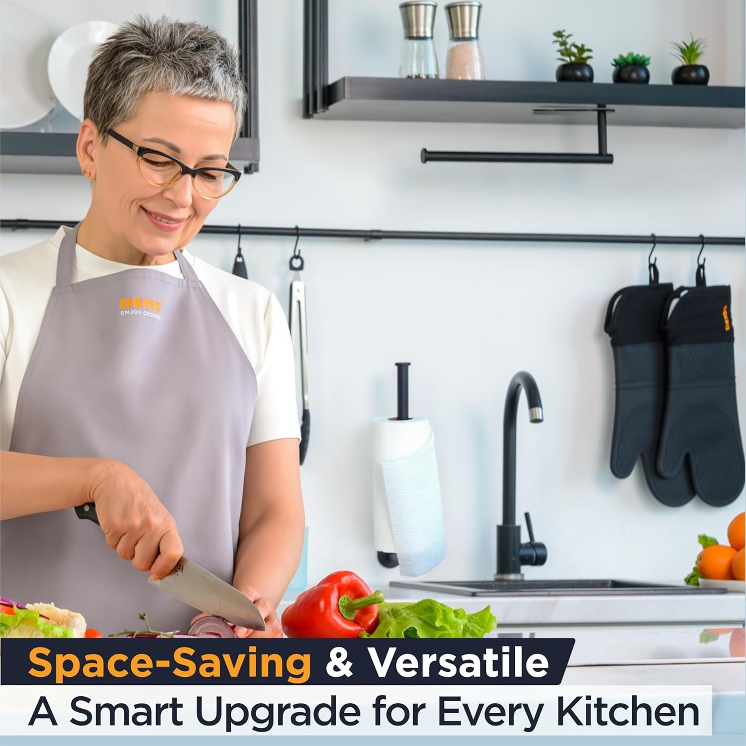 ✅ 【Multipurpose Organizer – Holds More Than Just Towels】: More than just a paper towel rack, this holder also accommodates plastic wrap, dish towels, napkin rolls, and other hangable items. Use it to free up counter space and bring order to any room—kitchen, garage, RV, or bathroom.