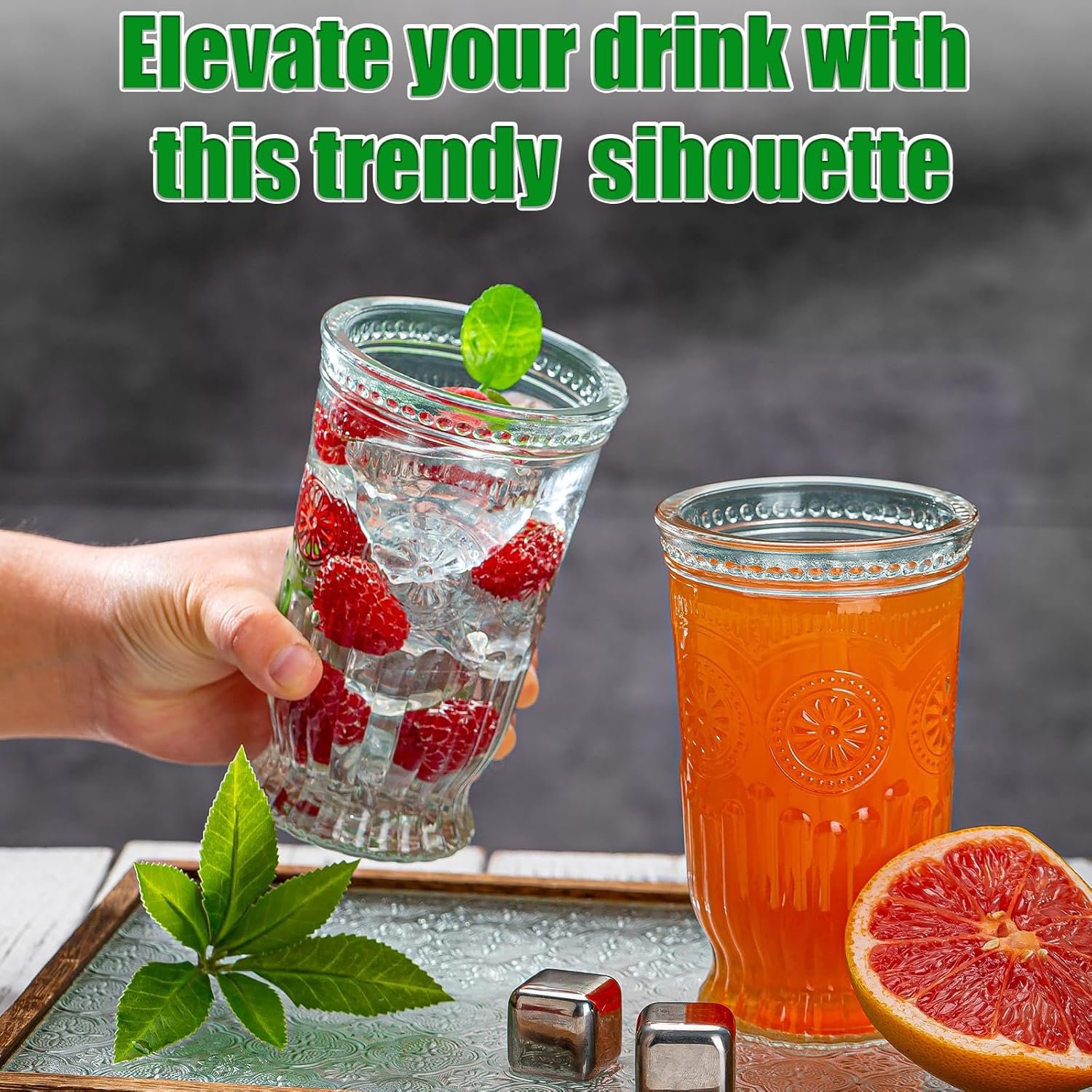 Vintage Design – The drinking glasses decorated with vintage embossed designs. Not only beautiful and durable, but also can increase the grip, the glass cup is not easy to fall. The vintage glass design takes you back to a simpler time, adding a touch of elegance to your moment.