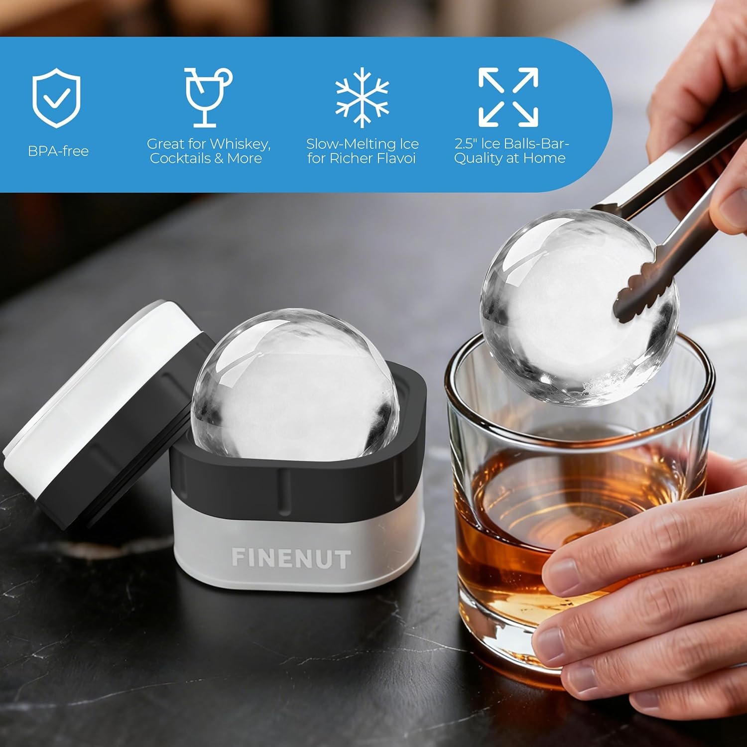 2.5 Inch Large Round Ice Cubes – Makes slow-melting ice spheres for whiskey, bourbon, cocktails, iced coffee, and other chilled drinks, helping keep flavor stronger for longer.