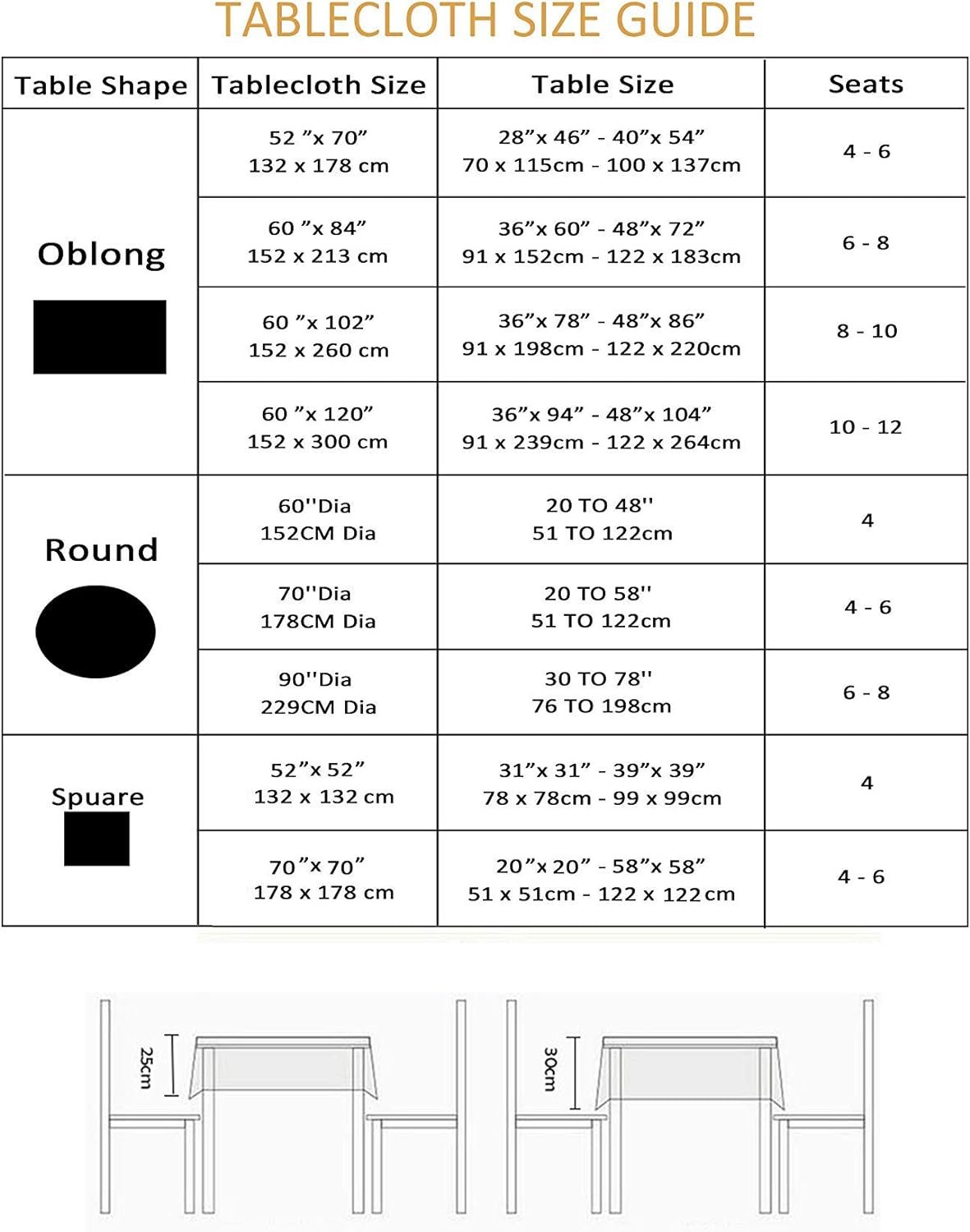 The tablecloths are crafted from high quality faux linen fabric, no chemical smells. Featuring good texture and function, our wrinkle resistant tablecloths are perfect to protect and embellish your tables.