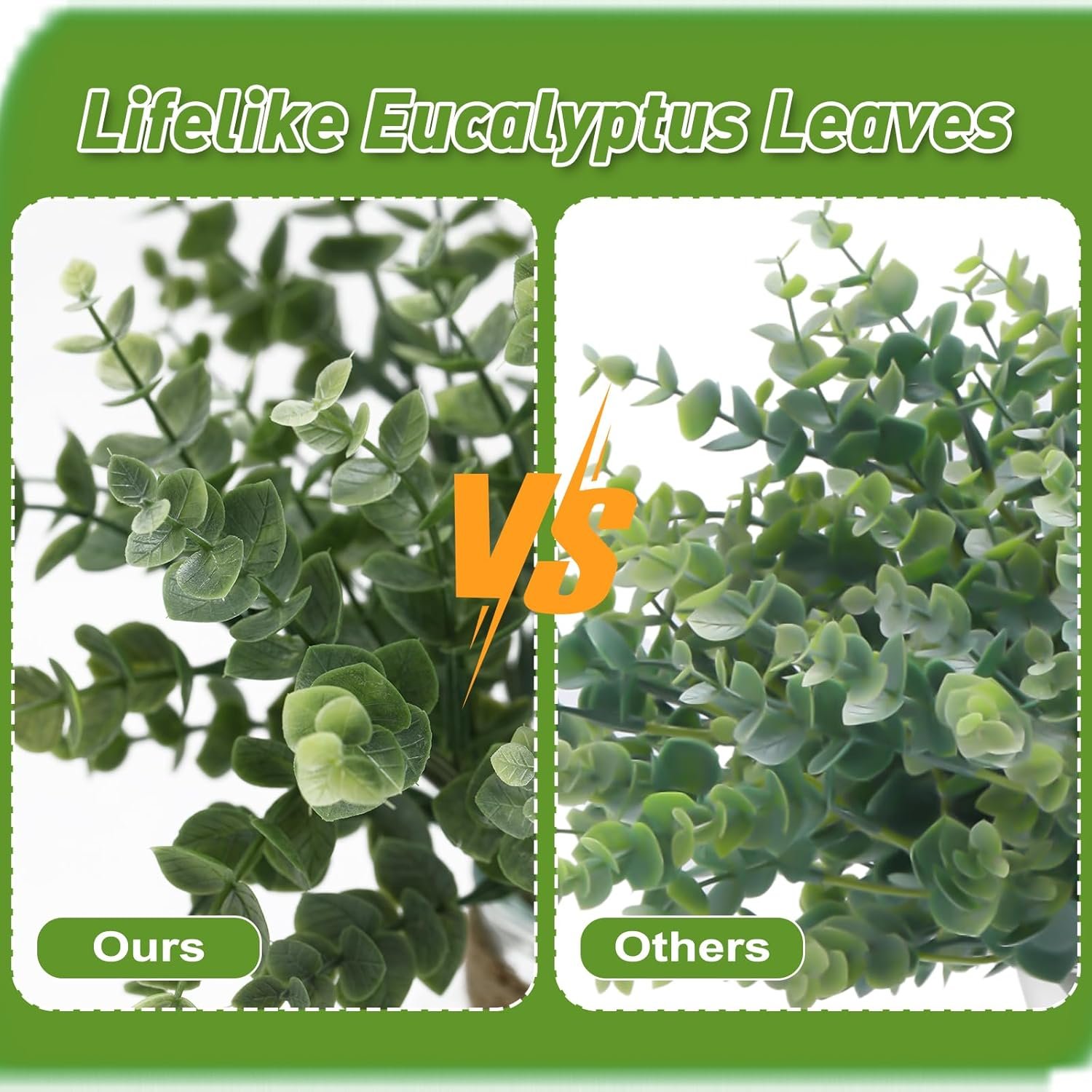 【Warm Tip】Please note that eucalyptus potted plant may be slightly deformed during shipping. After receiving the plant, it is necessary to djust the branches and trunks of the simulation plants to a perfect angle to achieve a perfect appearance.