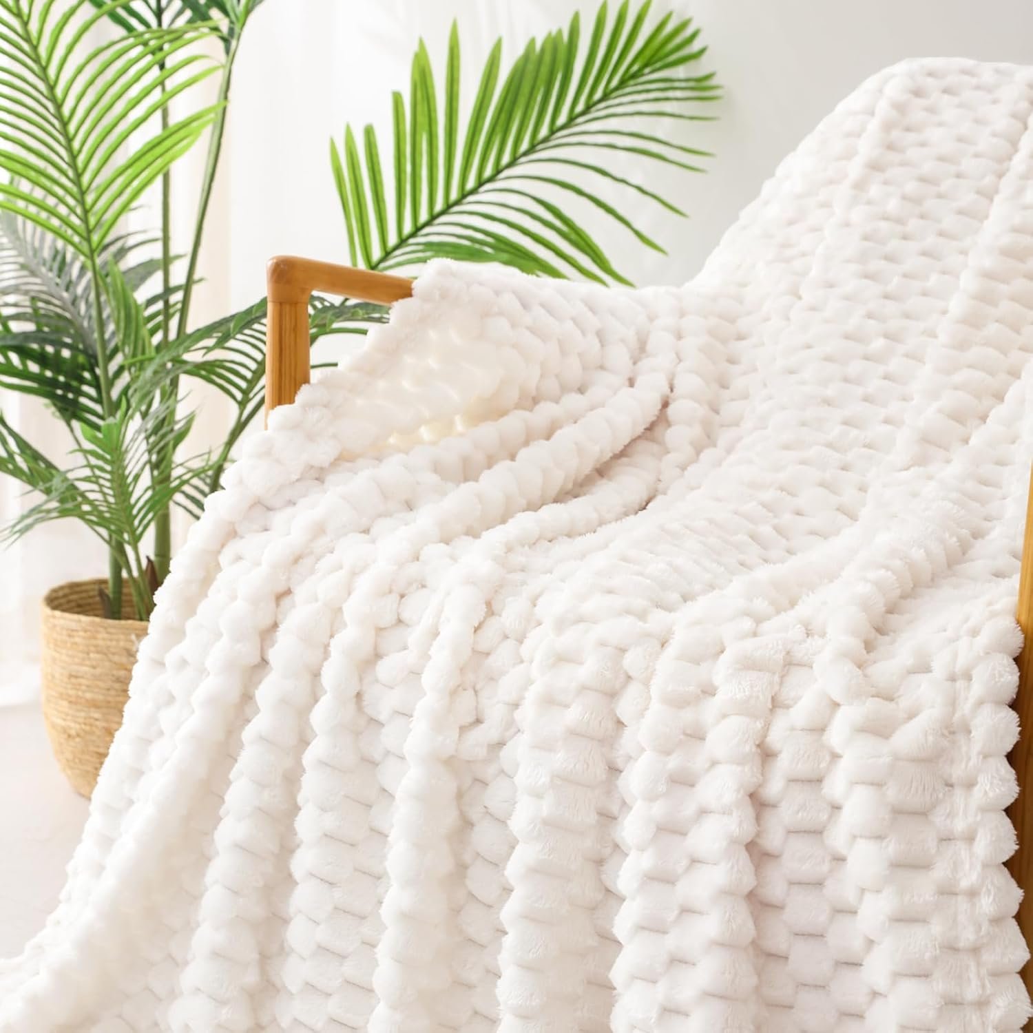 Exclusivo Mezcla Fleece Throw Blanket for Couch, Extra Large Fuzzy Ivory Bed Blankets, Soft Cozy Plush Sofa Throws for All Seasons, 50×70 Inches