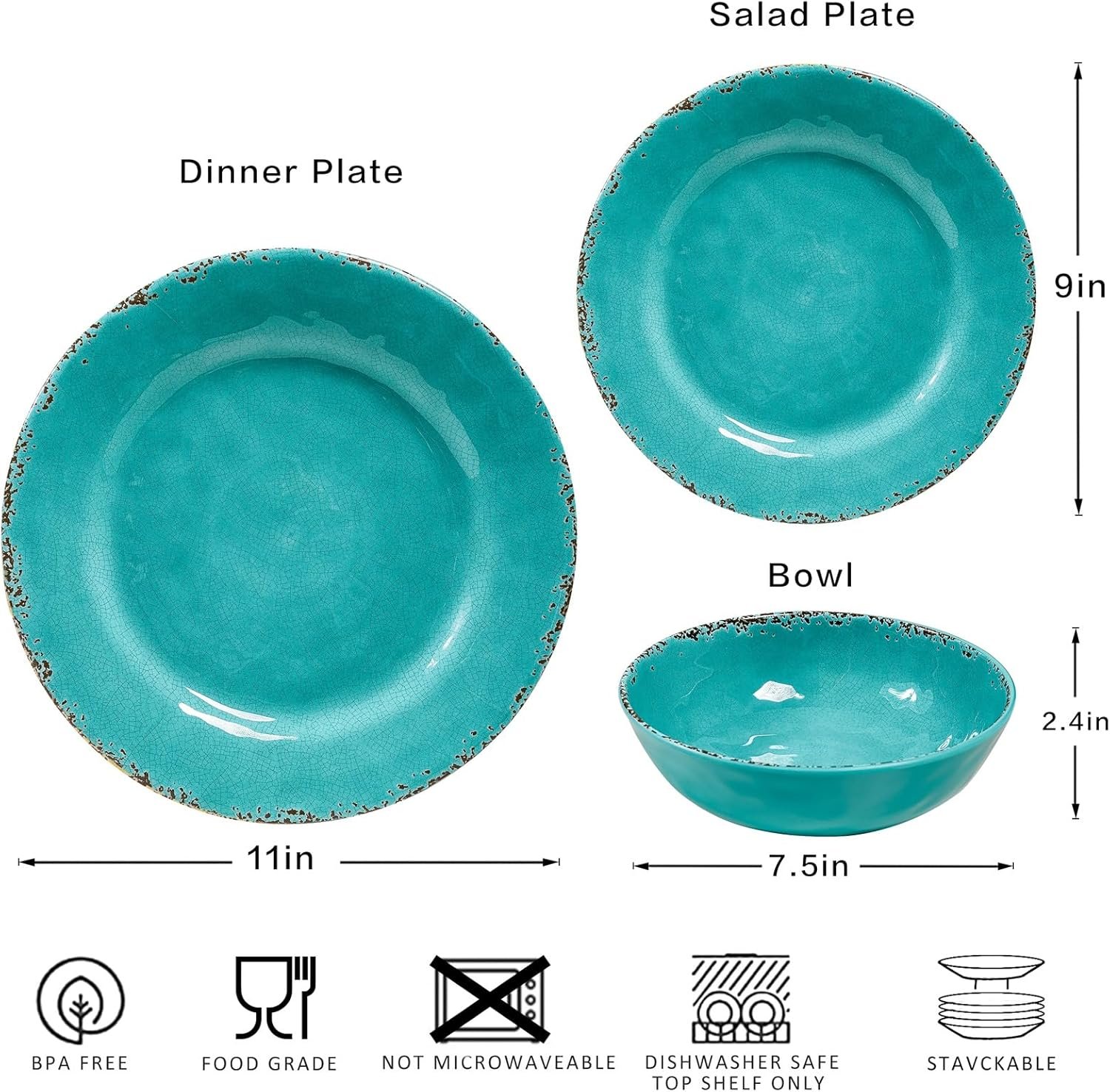 Be the first to review “Farmhouse Melamine Plates and Bowls Set, Set of 4 BPA Free 100% Melamine 12 Piece Vintage Dishes Dinnerware Sets,Dishwasher Safe, Teal”