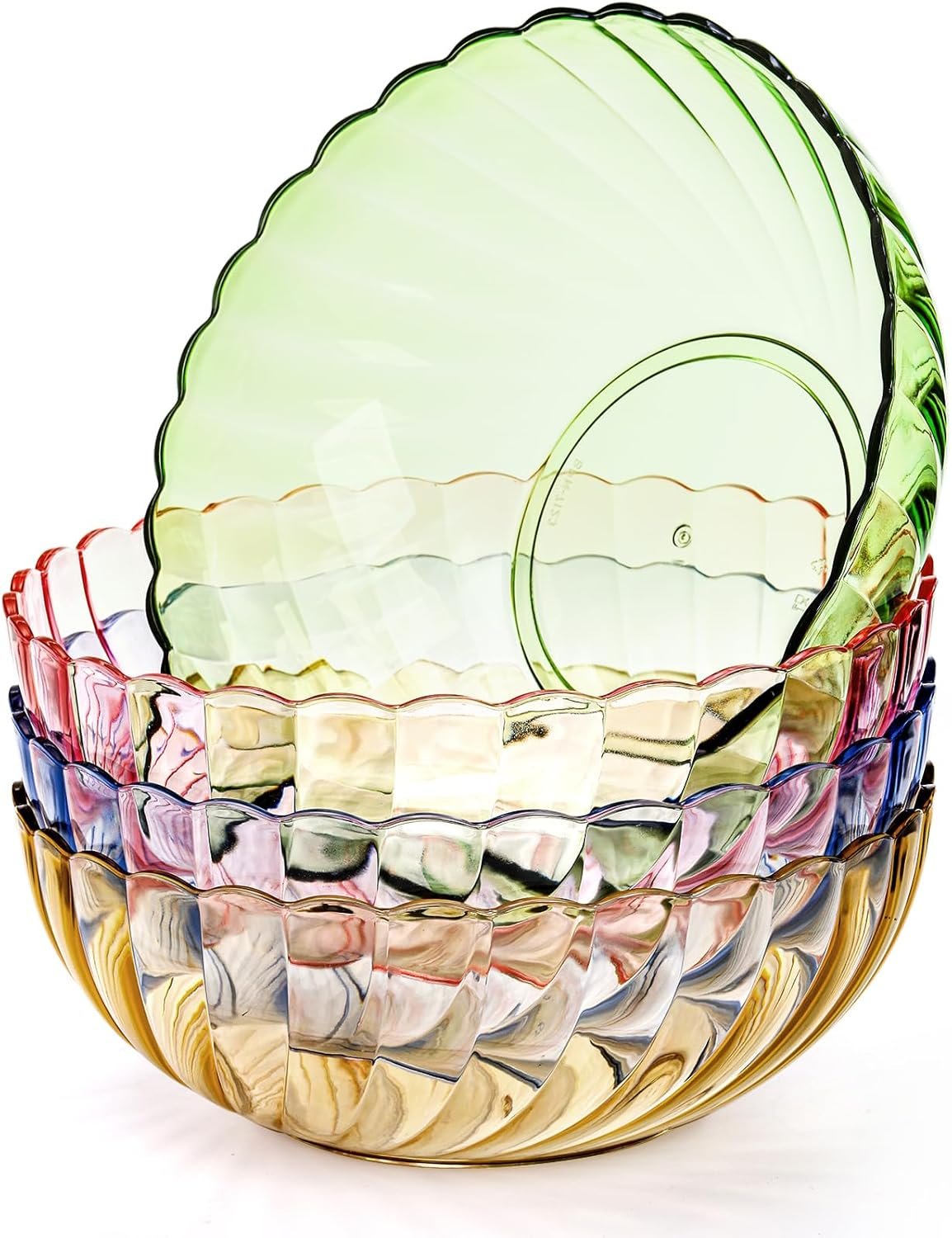 Elegant Design: These acrylic salad bowls are designed with striped shapes, which make them suitable for any home decor, these bowls are disposable and reusable, making it quick and easy to clean up and store food.