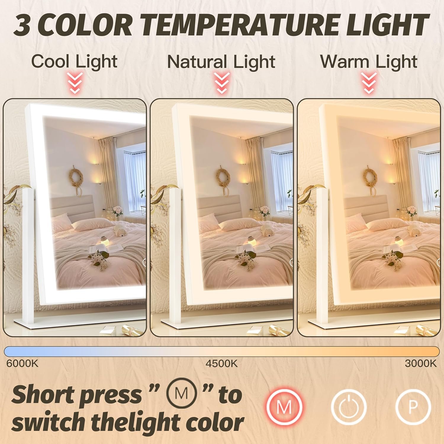 ✅【Perfect Size & Minimalistic Square Design】 This tabletop vanity mirror with lights is designed to be smaller in size than before, measuring 13″x17″, provides a perfect upper body view. 360° rotation LED makeup mirror Adjust the mirror’s angle effortlessly with its smooth swivel and tilt mechanism, ensuring you achieve the perfect viewing position every time.