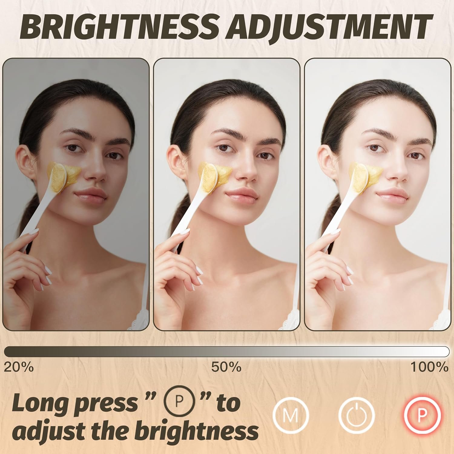 💗【Adjustable Brightness & 3-Color Lighting Modes】including cold light/daylight/warm light three color settings, the brightness of each color can be adjusted; simulating lighting in various occasions to meet personal makeup needs. “M” button on the left is used to change the light mode, the middle button is used to turn on and off, and the “P” button on the right is used to adjust the brightness.