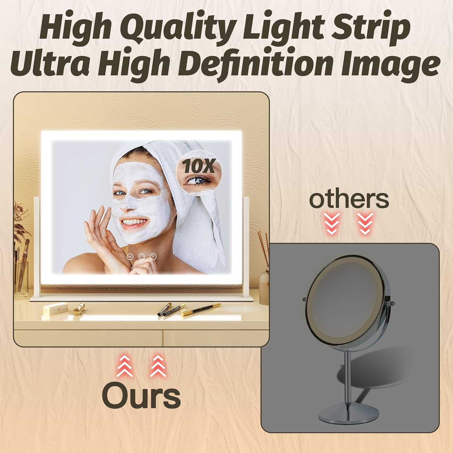 🎁【Perfect Gift for Anniversary】Our vanity mirror with lights makes a thoughtful and practical gift for a versatile and stylish addition for any great moments such as Valentine’s Day, Mother’s day anniversary, etc. for your girl, girlfriend, wife, or friend to upgrade their personal care routine.