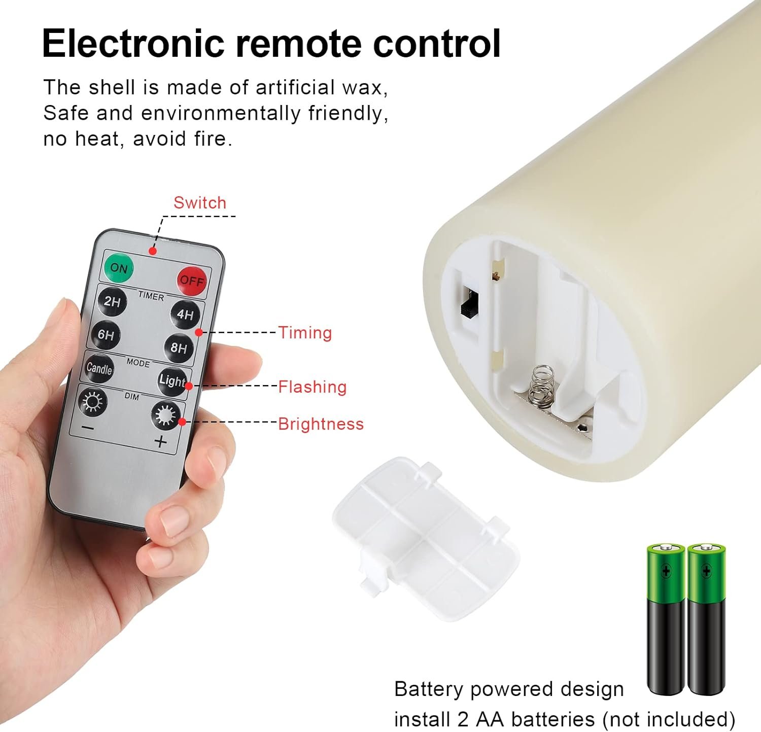 ENERGY SAVING, POWERFUL LEDS: These impressive candles require 2 AA batteries per candle, that are expected to last for about 200 hours, while the lifetime of the led lamps is up to 50,000 hours. Unlike real candles, these flameless pillar candles are made to last; you buy them once, you have them forever.