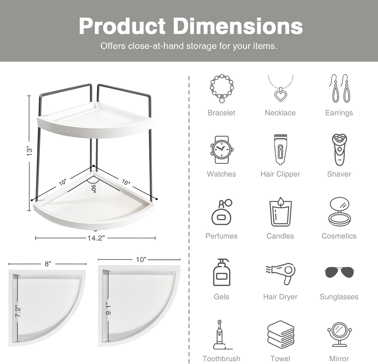 【Easy Assembly & Maneuver】This corner bathroom vanity tray organizer come with necessary accessories are easy to assembly. It is lightweight and easy to move wherever you want.